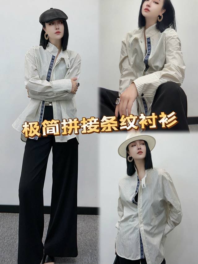 The first batch of high-quality goods is simple and "all-purpose". The atmospheric and simple splicing striped shirt has a long sleeve silhouette and can be worn in all seasons. The matching formula is infinitely extended. Street style, French lazy feeling, elegant commuting, chic Boyish, various styles are easy to come by, and commuting is fashionable and sophisticated. Smlxl
