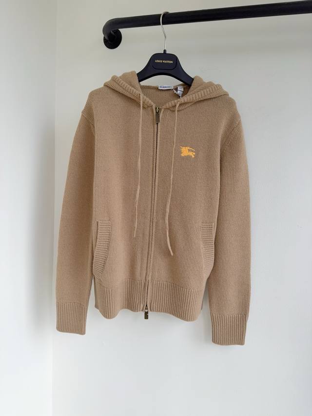 Bbr25 Autumn/Winter New Solid Color Wool and Cashmere Drawstring Hooded Zipper Loose Fit Knit Cardigan Outerwear. The combination of the formal feel of the virgin wool and cashmere with three-dimensional tailoring defines the style of this cardigan. The high-end cut emphasizes structure and comfort. In stock: S, M, L,