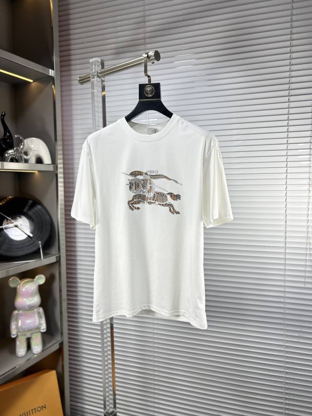 Bbr*BURBERRY Ss25 new spring and summer short-sleeved T-shirt, mercerized cotton top pattern logo, handsome and fashionable, simple and versatile style, not only crisp, maintain the trendy silhouette, but also comfortable to wear, the yarn is more delicate Size: M-Xxxl