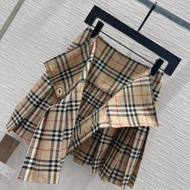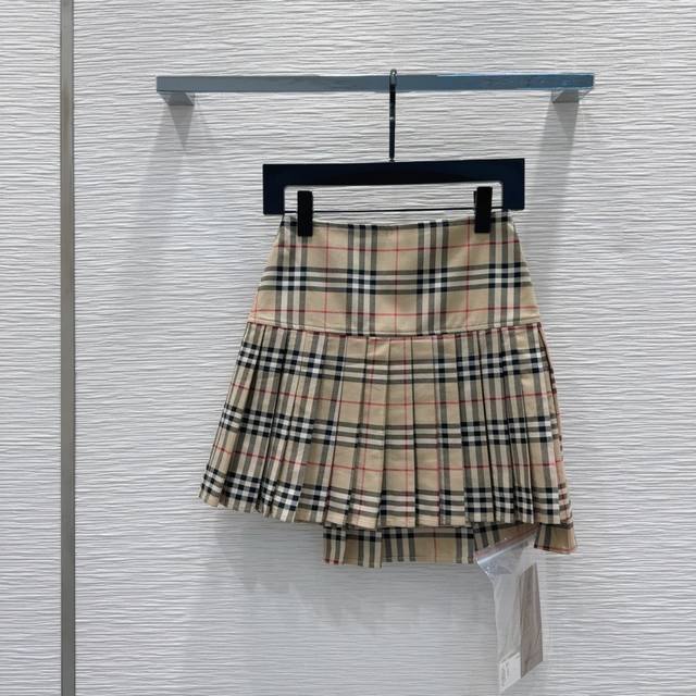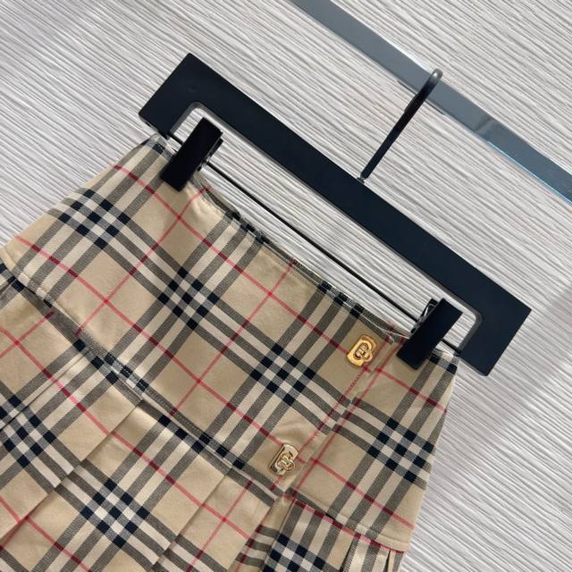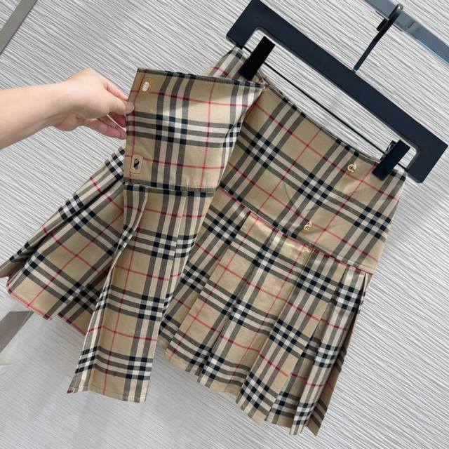 Burberr* 2025Ss new pleated skirt with British print, comfortable and stylish, e