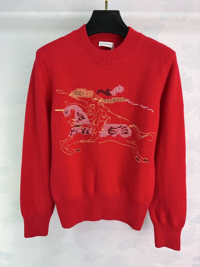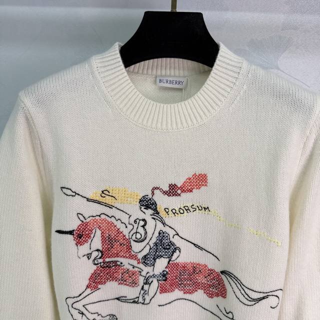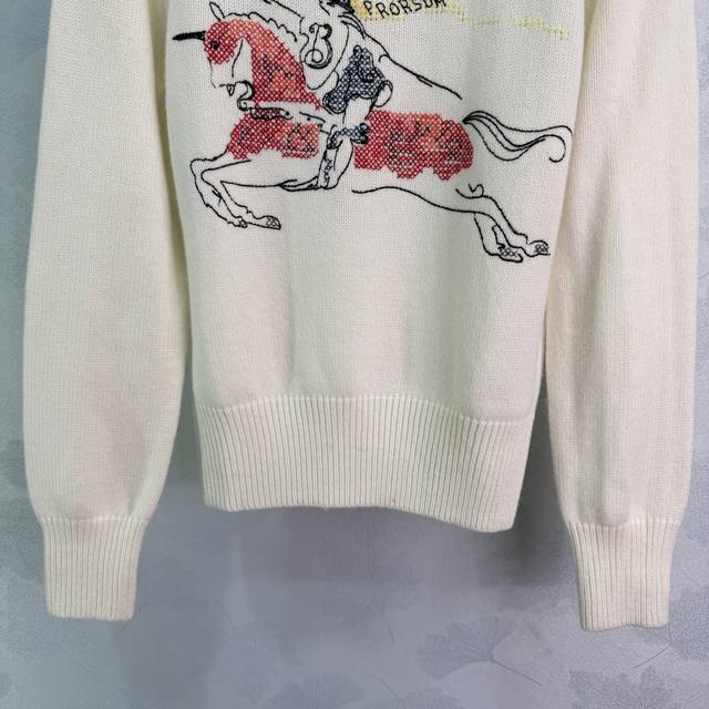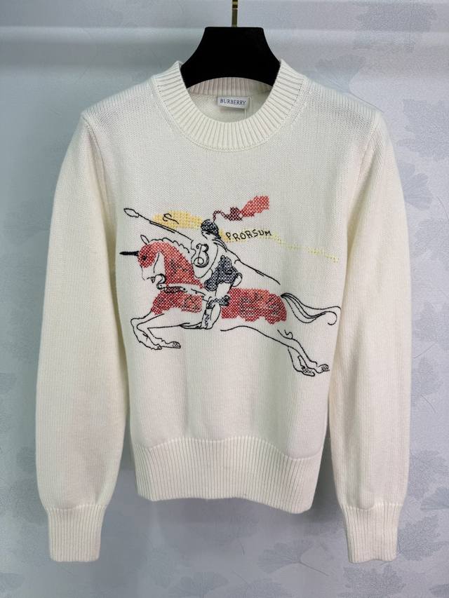 Burberr* 2026 Early Spring Year of the Horse Limited Edition! Equestrian Embroidery Crew Neck Knit Long-Sleeve Sweater! Made with custom imported yarn, this comfortable and soft knit sweater features a stylish crew neck, pullover design, and ribbed cuffs and hem. The equestrian horse embroidery on the front exudes a high-end feel, showcasing a sophisticated and understated style. Perfect for casual wear, commuting, and everyday outings! Available in 2 colors and 3 sizes: S, M, L, T226B, DDD