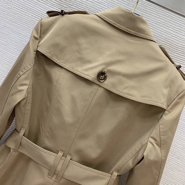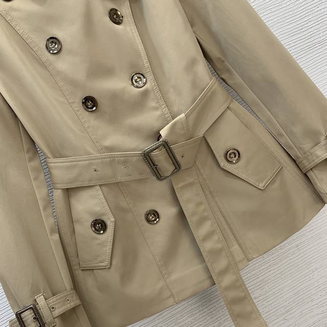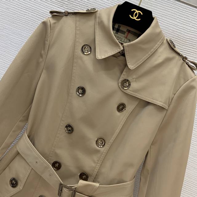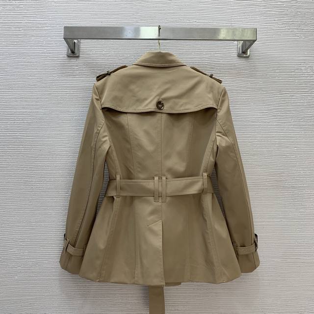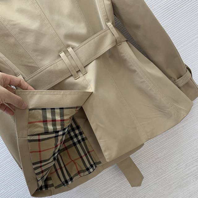 Burberr* New Burberr Custom Classic Check Lined Original Letter Logo Button Double-Breasted Waist-cinching Short Slim Fit Trench Coat! Khaki, Black, Size L: Shoulder Width 37cm, Chest 94cm, Sleeve Length 56cm, Length 66cm. (
