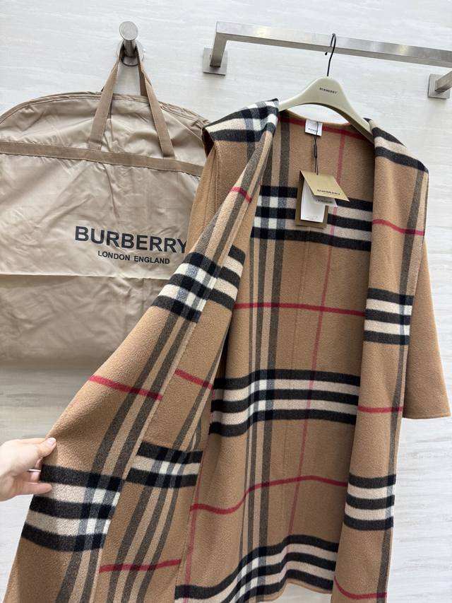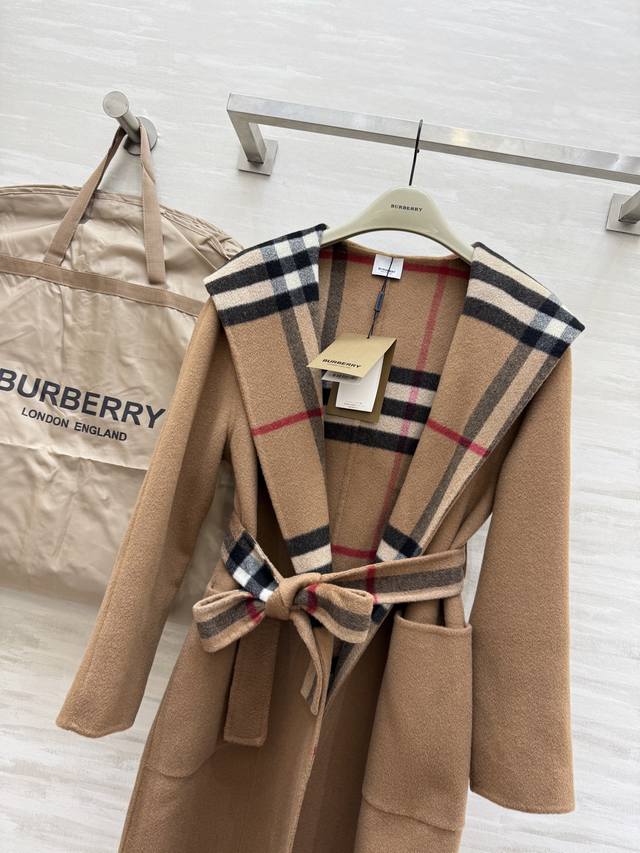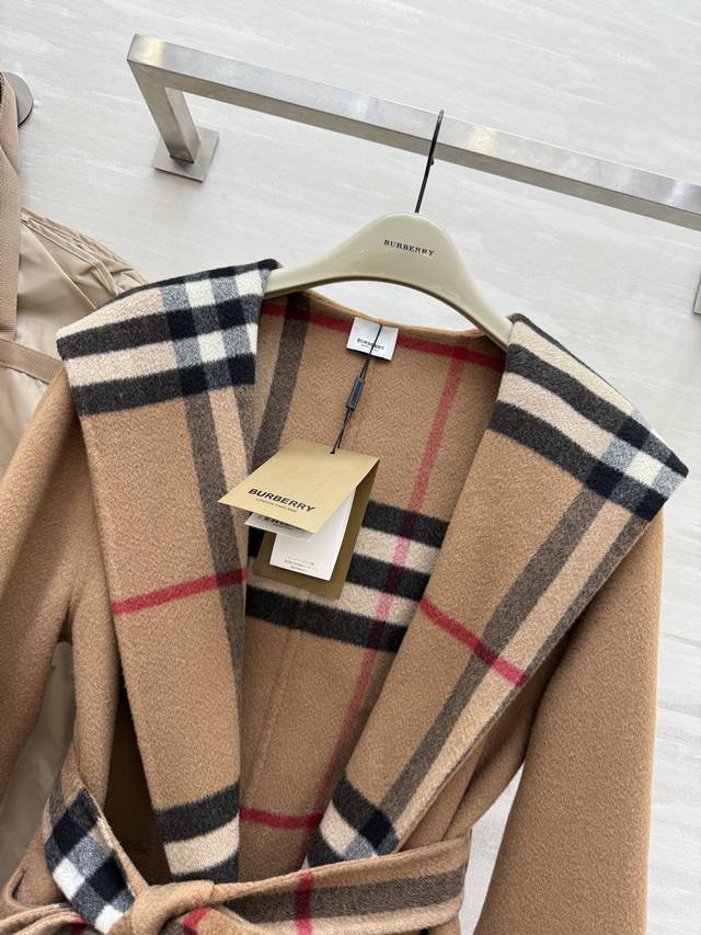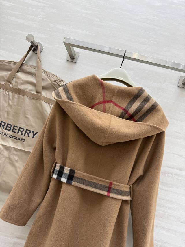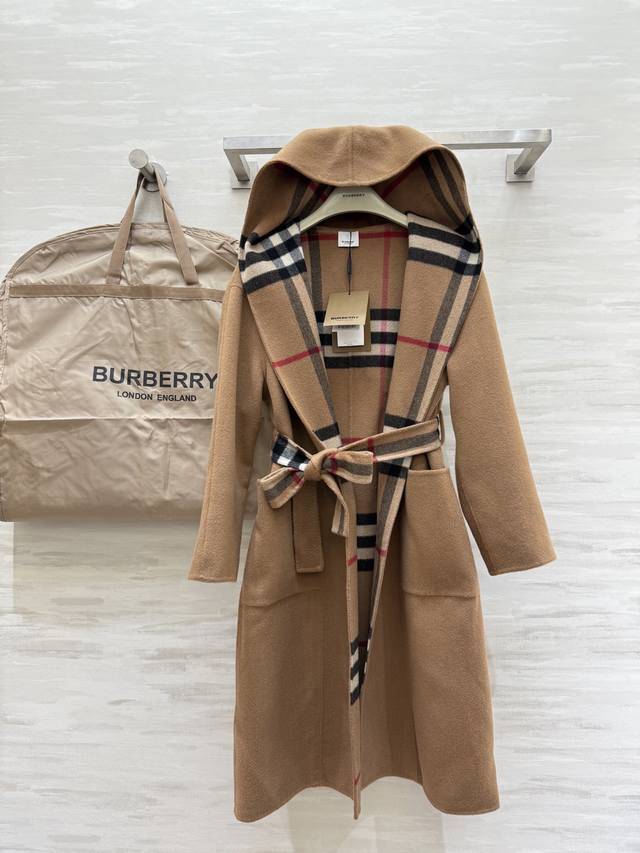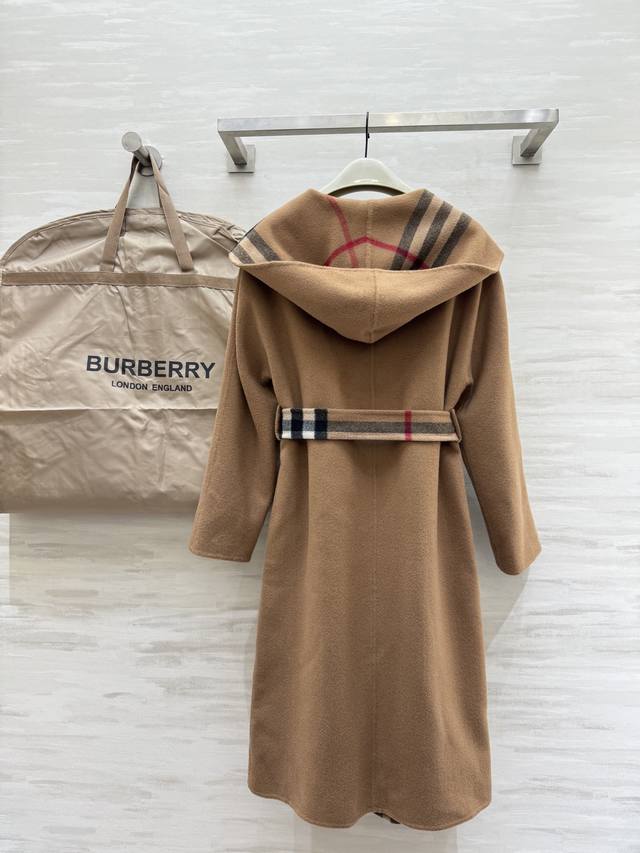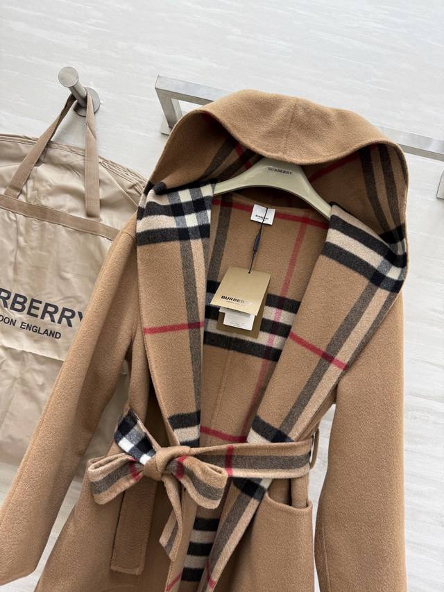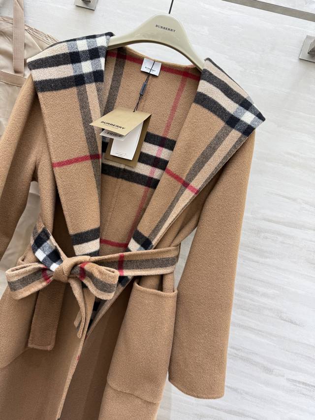 Burberr2 autumn and winter new double-sided hooded coat with one side solid colo