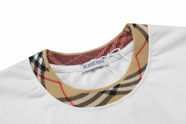 Burberry 2025 new light luxury custom check ribbed collar unisex short-sleeved T-shirt