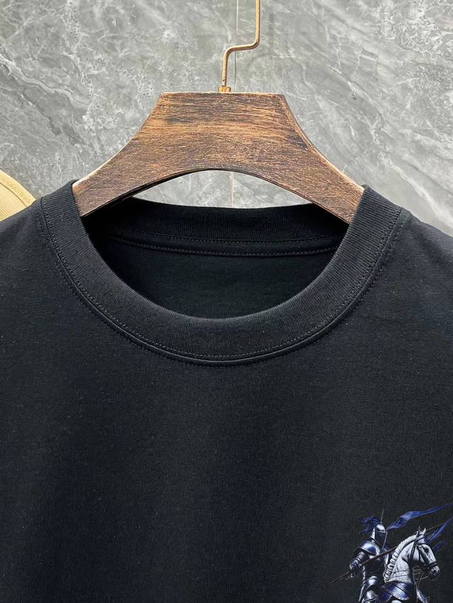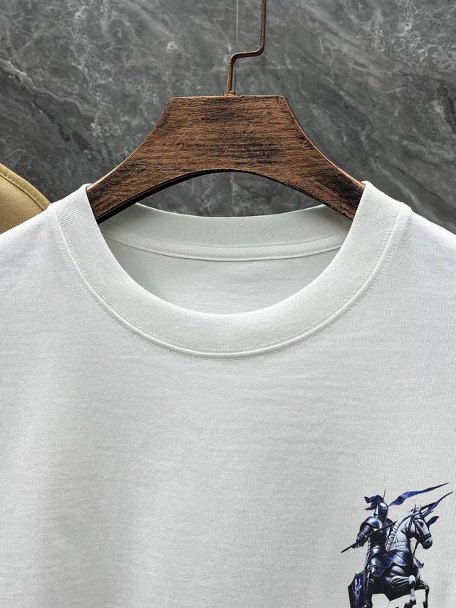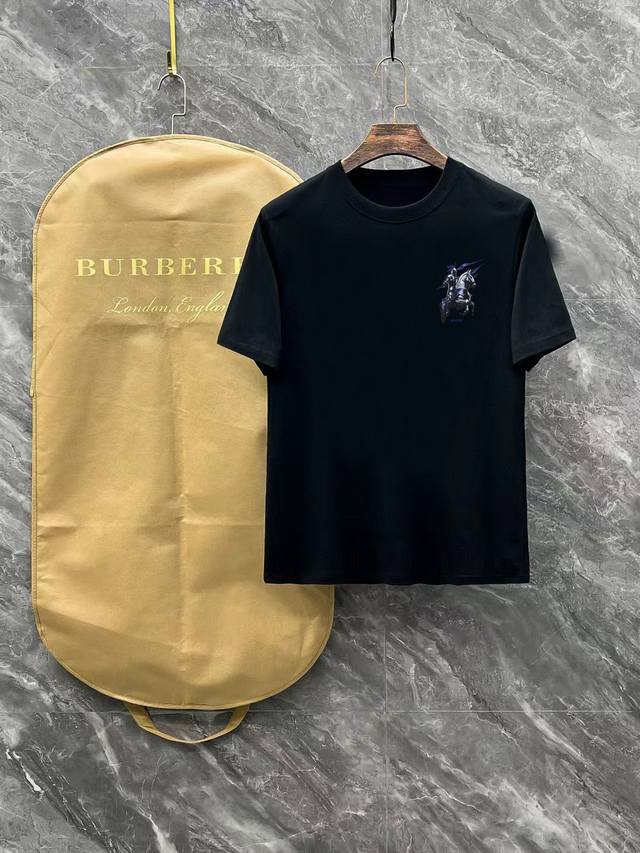 BURBERRY# 2025 Spring and Summer New Release, the latest short-sleeved round neck T-shirt, high-end custom design, avant-garde and fashionable! Brand Logo, heavy craftsmanship design, high-end customization, 250 grams of Xinjiang long-staple cotton fabric. Soft to the touch. Comfortable to wear. Exquisite stitching at the counter level. Fine workmanship. The upper body effect is invincible and handsome! A must-have item for men! Color: black. White!