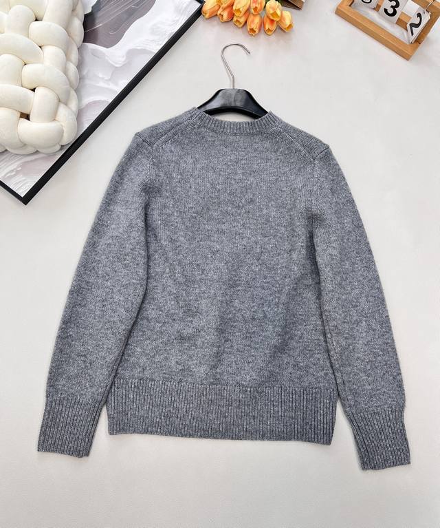 for 10,490, this sweater features the Equestrian Logo on the chest, with the name in bold, legible lettering. Made from pure wool using a seven-needle imported knitting machine, it's adorned with contrasting equestrian and brand logos. The wool blend material adds a stylish touch, making it a must-have every year. Basic, simple, and easy to match, this classic and timeless style features a crew neck design, making it versatile and suitable for various outerwear and occasions. Ribbed knit details at the neckline, cuffs, and hem add dimension and detail, while also helping to conform to the body's curves, providing warmth and preventing deformation. The front of the