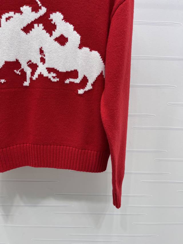 New Arrival! High-end quality original Burberry* 2026 Early Spring Collection! Horse-themed crochet pullover knit sweater! Made with custom wool yarn, this high-quality, comfortable, and soft pullover long-sleeved sweater features a tightly knitted design for warmth and wind protection. The ribbed trim throughout adds a touch of sophistication. The horse logo adorns the chest, and the crochet lettering on the sleeves echoes the design, showcasing a high-end positioning and fashionable style. A vibrant red color adds a touch of sophistication and style for the end-of-year season! Available in 2 colors! Sizes SM-L3! High-quality bulk order A706B340C DDD