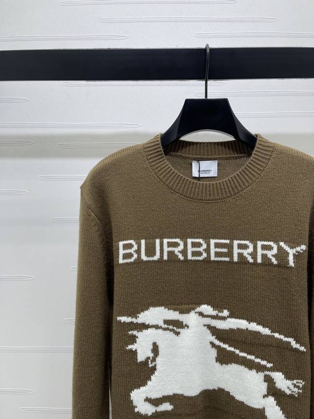 New Arrival! High-Quality Original Burberry* 2025 Autumn/Winter Collection! Horse-themed Crochet Pullover Knit Sweater! Made with custom wool yarn, this high-quality, comfortable, and soft pullover long-sleeved sweater features a tightly knitted design for warmth and wind protection. The ribbed trim throughout adds a touch of sophistication. The horse logo and brand name are prominently displayed on the chest, highlighting its premium positioning and fashionable style. Versatile khaki color, regular fit! 6 colors! Sizes SM-L3! High-quality bulk order A706B300C DDD