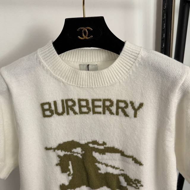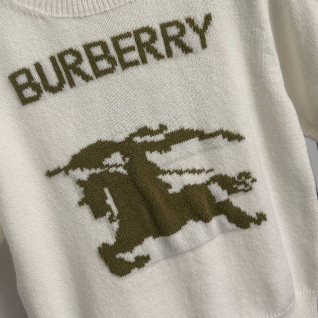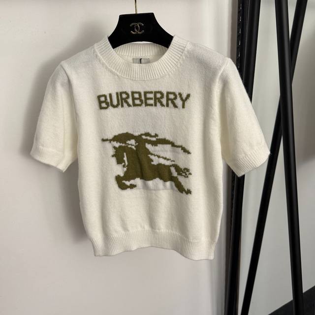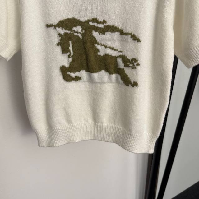 Style No. 20258454 Burberr*New War Horse Rider Logo Pullover Short-Sleeve Knit Sweater, White, Red, Sky Blue, Khaki, Black, One Size: Shoulder Width 36cm, Chest 84cm, Sleeve Length 21cm, Length 51cm; Weight: 0.195Kg DDD