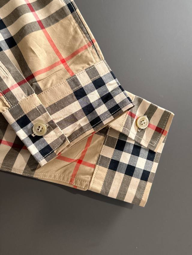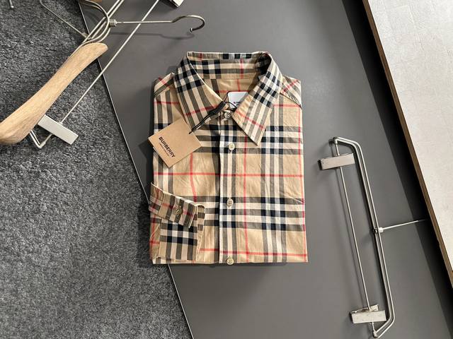 Bbr 25 Classic Plaid Shirt. Original fabric purchased, custom-dyed, all in checkered patterns. 1:1 replica of classic brown small-check cotton fabric. This style can be worn alone or as a jacket. Lightweight, comfortable, fashionable, and versatile. Checkered pattern on the body. Shell-style cuffs with laser-engraved buttons. High-quality edition. Unisex. Sizes: XS - L