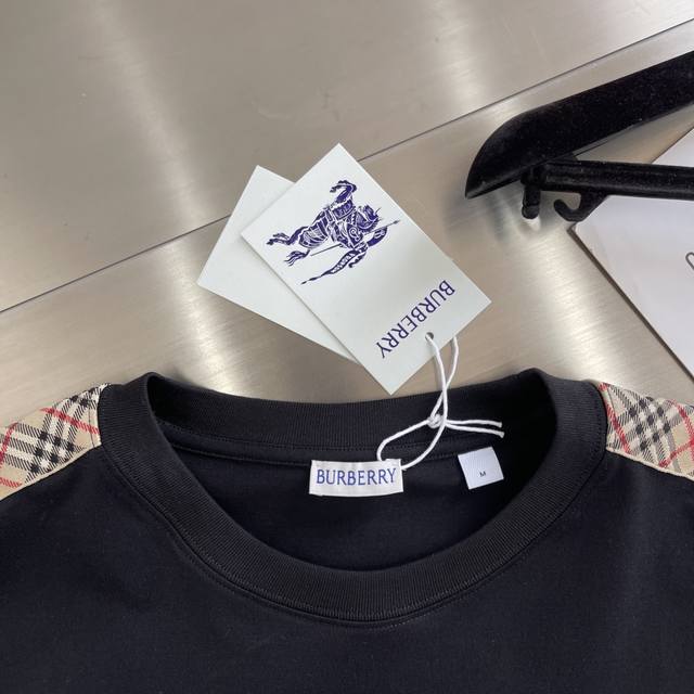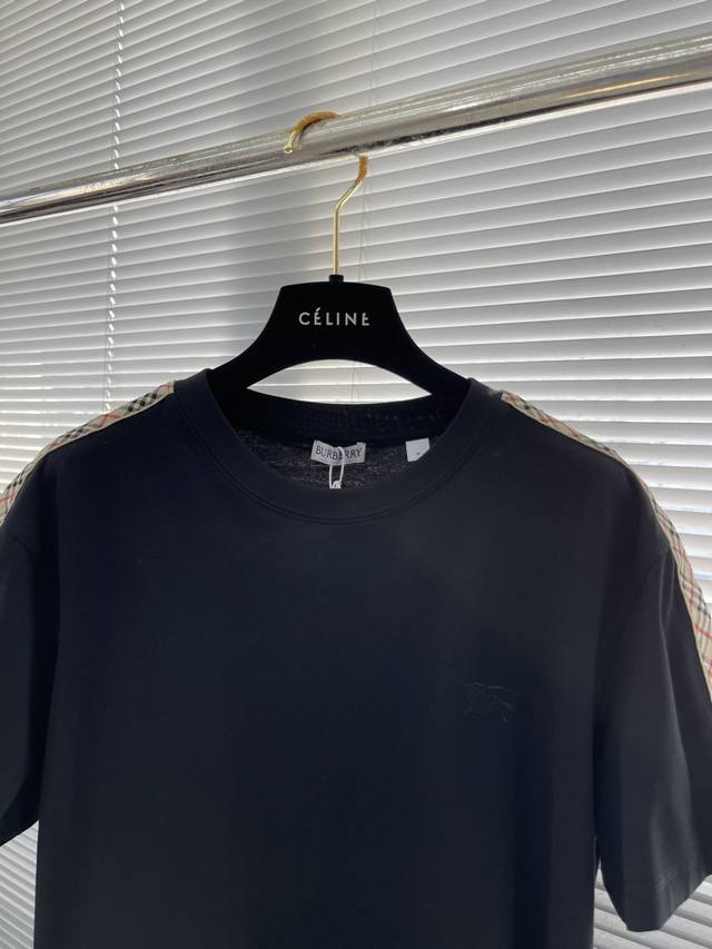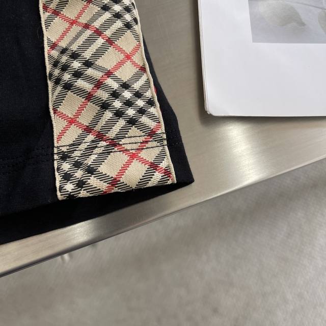 Bbr 25 New checkered ribbon T-shirt, this T-shirt is made of lightweight plain cotton fabric and has a slim fit. It is decorated with the Equestrian Knight logo Ekd embroidery, the sleeves are integrated with the Bur checkered ribbon, the ribbed knit neckline, and the Equestrian Knight logo Ekd embroidery on the chest. The style is novel and fashionable, highly recommended!