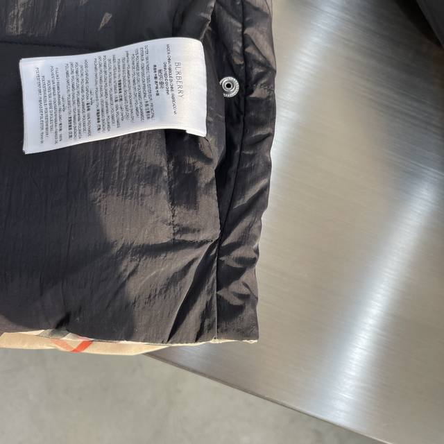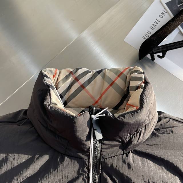 Bbr Autumn/Winter New Classic Plaid + Equestrian Logo Reversible Down Jacket DDD This nylon down jacket is filled with white duck down. It features a reversible design, with one side decorated with a Bur plaid pattern and the other side a solid color design adorned with an Equestrian Rider logo appliqu
