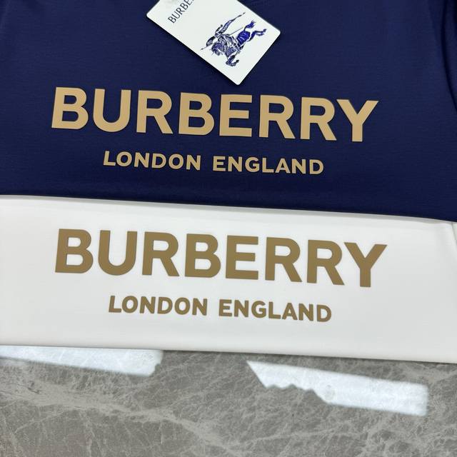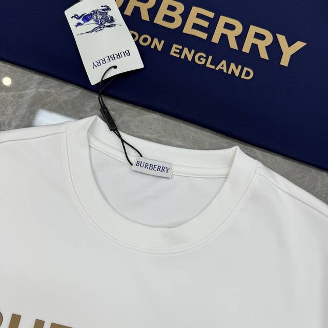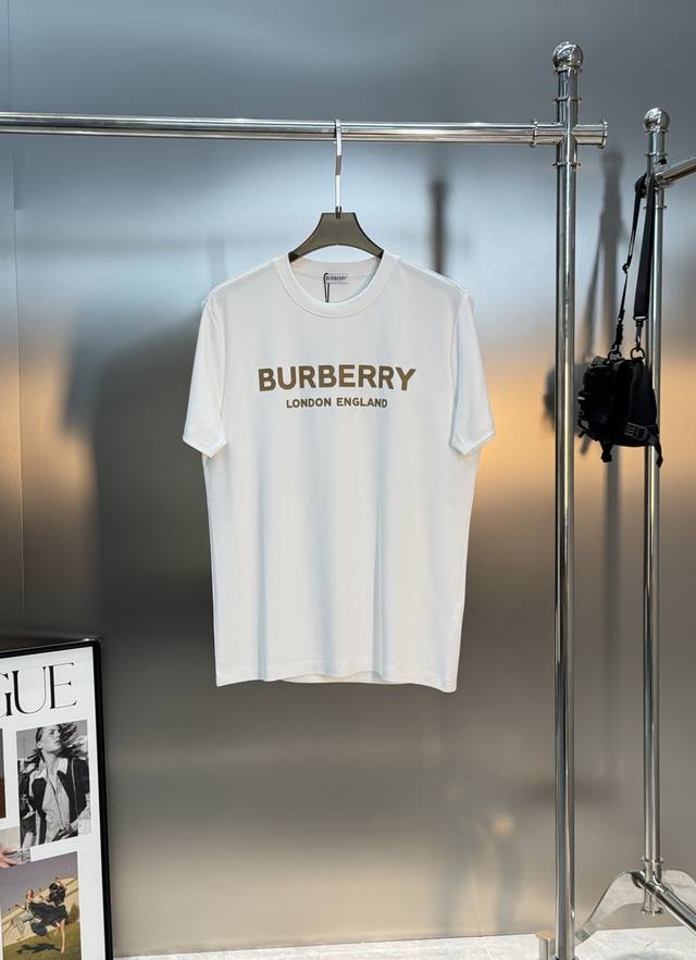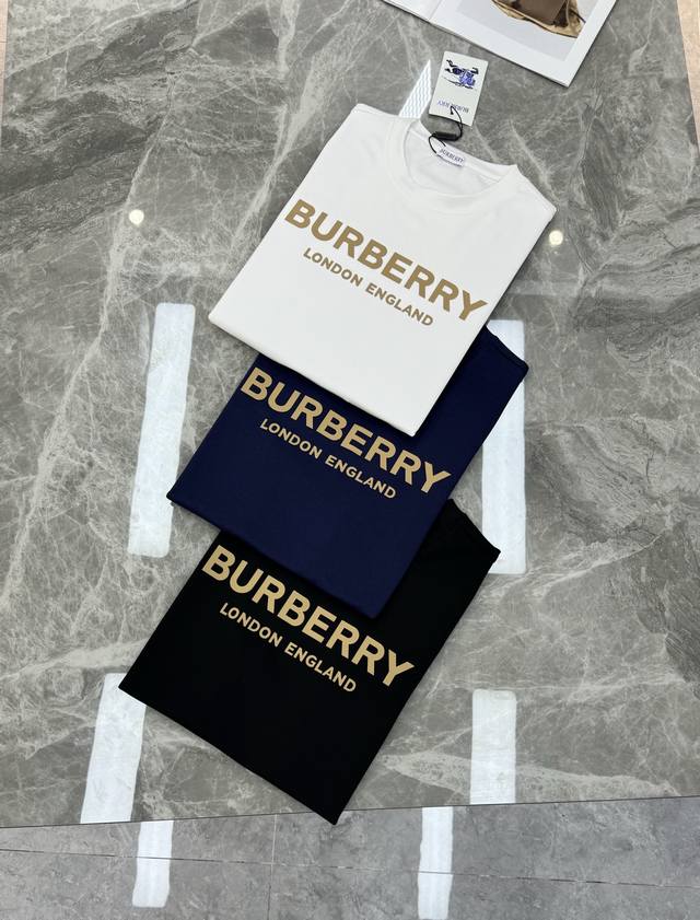 Bbr* Burberry 25S New Letter T-Shirt. A refreshed and upgraded versatile basic style, produced by a trading company! Made from premium organic G Modal cotton, breathable, comfortable, and durable. Features a gold-stamped Burberry logo on the chest, showcasing the new micro-logo design. A fitted cut to express urban style. Colors: Black, White, Dark Blue. Sizes: M-3XL (slim fit). S and 4XL are available for custom orders. For someone 175cm tall and weighing 140kg, L is recommended.