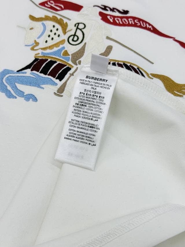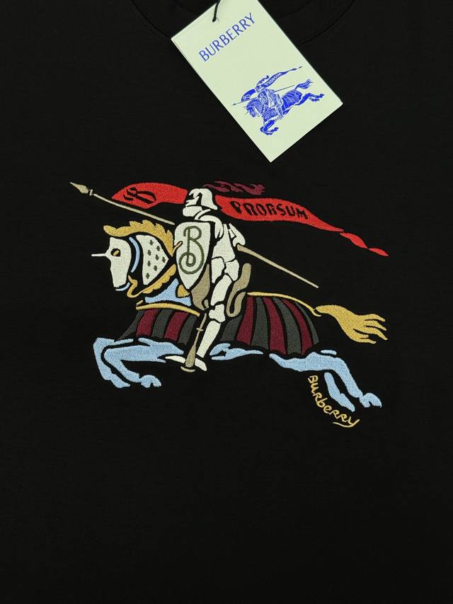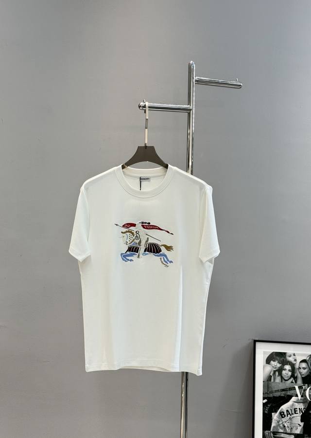 Bbr* Burberry 25S New Modal T-Shirt. Highly recommended for its heavy-duty embroidered design. A refreshed and upgraded versatile basic style, produced by a trading company! Made from premium organic G Modal cotton, breathable, comfortable, and durable. Features a Tb equestrian 3D embroidered pattern on the chest, showcasing a new micro-logo. A fitted cut to express urban style. Colors: Black, White. Sizes: M-3XL (slim fit). S and 4XL are available for custom orders. For someone 175cm tall and weighing 140kg, L is recommended.