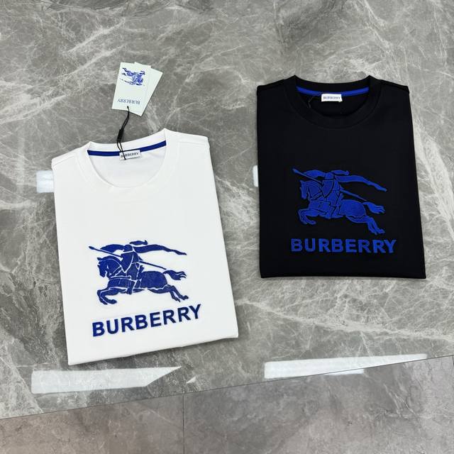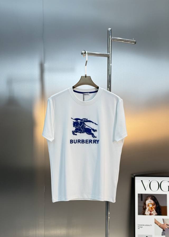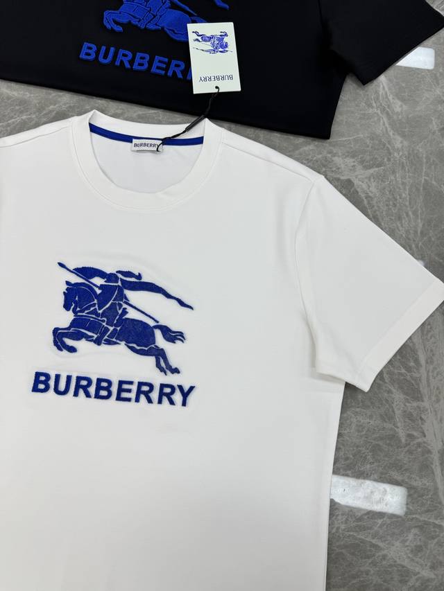 Bbr* Burberry-Li 2025S New Short-Sleeve T-Shirt, featuring heavy-duty 3D toothbrush embroidery. High-end craftsmanship. The horse-shaped design is full of three-dimensionality. Stylish and cool, a simple and versatile piece. Made from selected 300G modal fabric, it is not only crisp and maintains a trendy silhouette, but also comfortable to wear. The yarn is finer, and all three labels are complete! Colors: Black, White. Sizes: M-3XL, S and 4XL can be customized. Slim fit, 175cm, 140kg, L recommended.