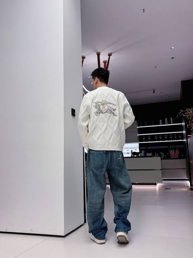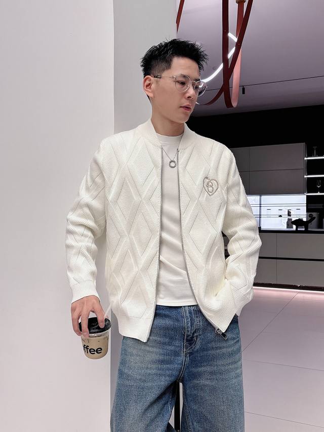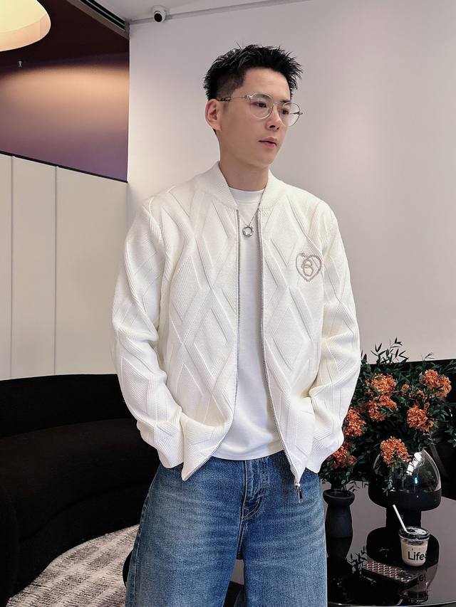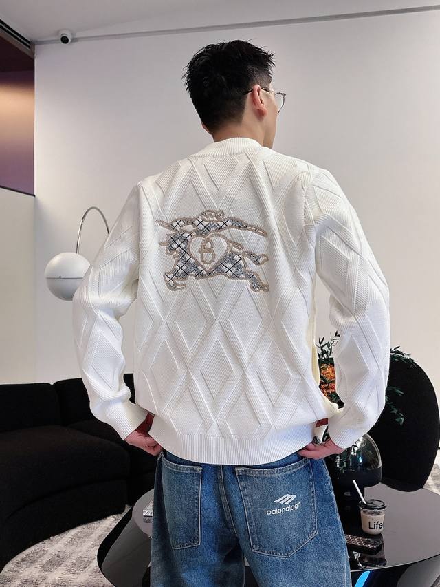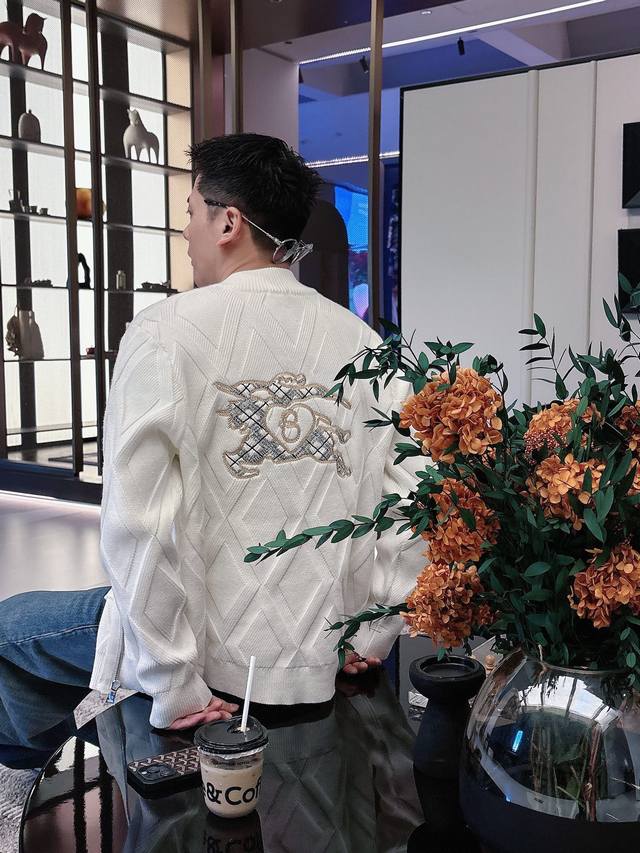 Bbr25S Burberry Black Diamond Pattern Wool Coat, classic baseball collar + zipper design, casual yet stylish. Colors: Black, White. Sizes: M-3XL. Recommended size: L for someone 175cm tall and weighing 140kg.