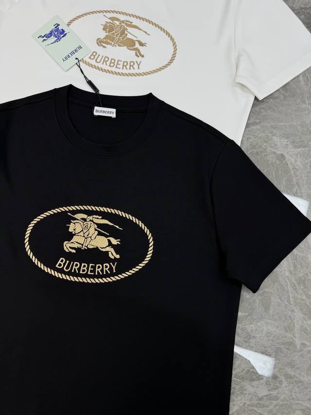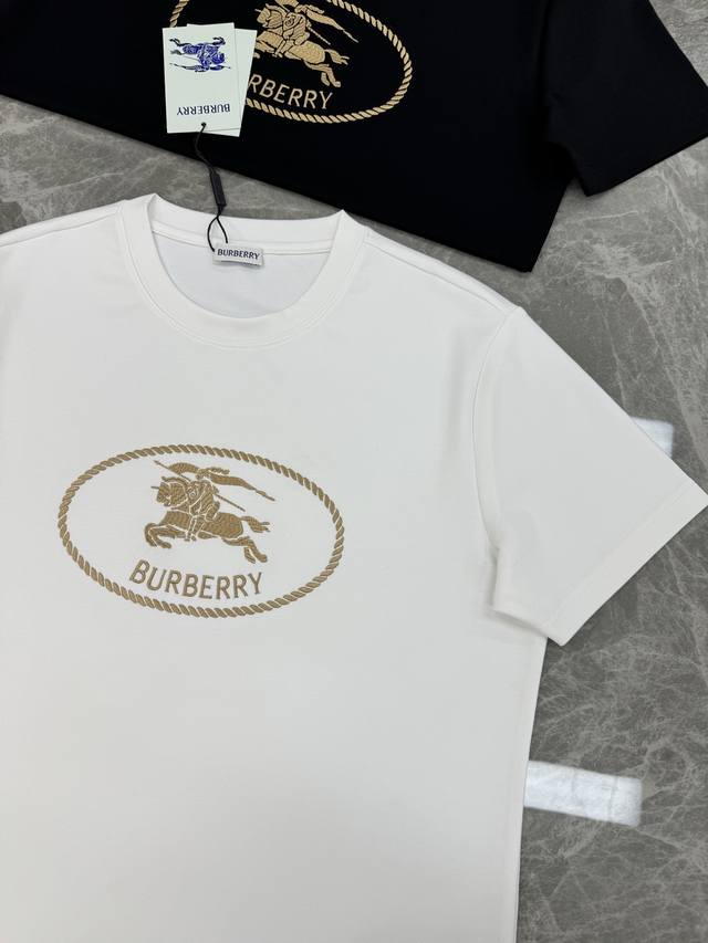 Bbr*Burberry 25S New Horse T-Shirt. A refreshed and upgraded versatile basic style, produced by a trading company! Made from premium organic 300g modal cotton fabric, breathable, comfortable, and durable. Features Burberry's classic 3D horse embroidery on the chest, showcasing the new logo. A fitted cut to express urban style. Colors: Black, White. Sizes: M-3XL (slim fit! S and 4XL can be custom-made. For someone 175cm tall and weighing 140kg, L is recommended).