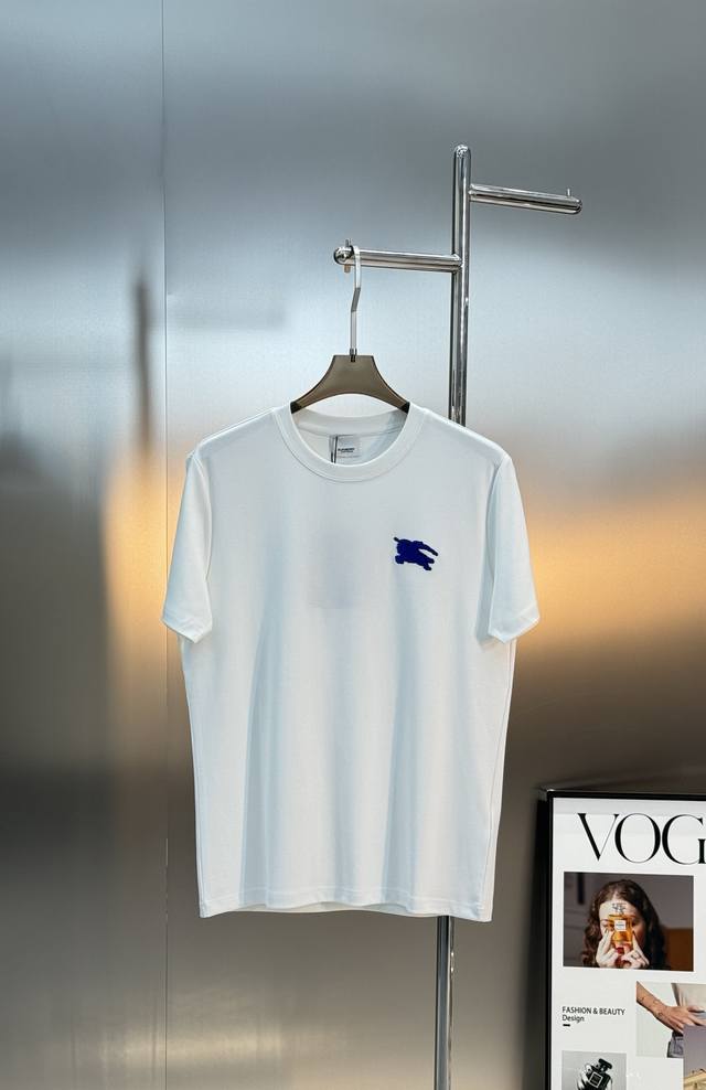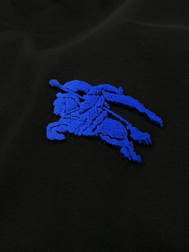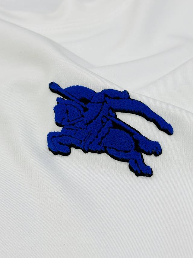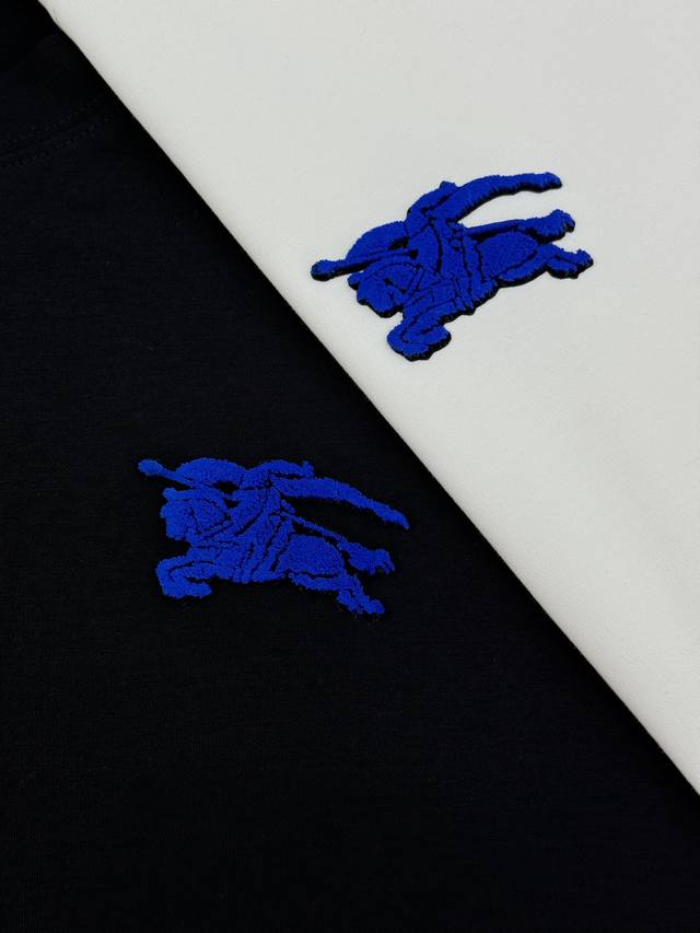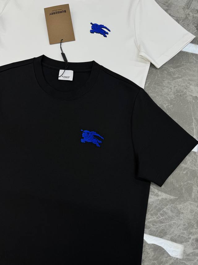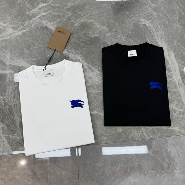 Bbr*Burberry 25S New Horse T-Shirt. A refreshed and upgraded versatile basic style, produced by a trading company! Made from premium organic G Modal cotton, breathable, comfortable, and durable. Features Burberry's classic horse motif with 3D flocking on the chest. The latest blue horse design showcases the new logo. A fitted cut to express urban style. Colors: Black, White. Sizes: M-3XL (slim fit). S and 4XL are available for custom orders. For someone 175cm tall and weighing 140kg, L is recommended.