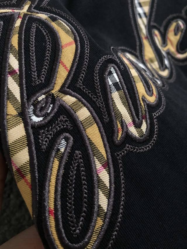 Bbr*Size S-XL Ddd 2026 Spring/Summer Short-Sleeve T-Shirt. Featuring intricate letter embroidery as the main element, this shirt cleverly incorporates plaid appliqu