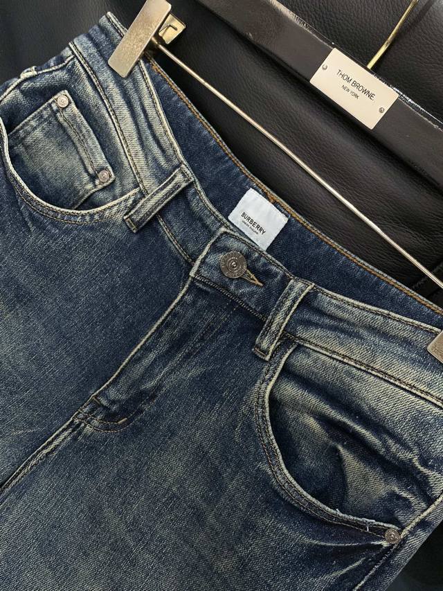 Burberry, 2025 autumn new products, available on the official website and counters simultaneously, original single goods, super stylish jeans, customized original washed denim fabric, unique design, top-grade printed pattern logo, original hardware accessories decoration, extremely outstanding jeans, materials and craftsmanship are extremely luxurious and exquisite, high grade, handsome and stylish on the upper body, recommended, sizes: 30-38, no 35, 37Fmz