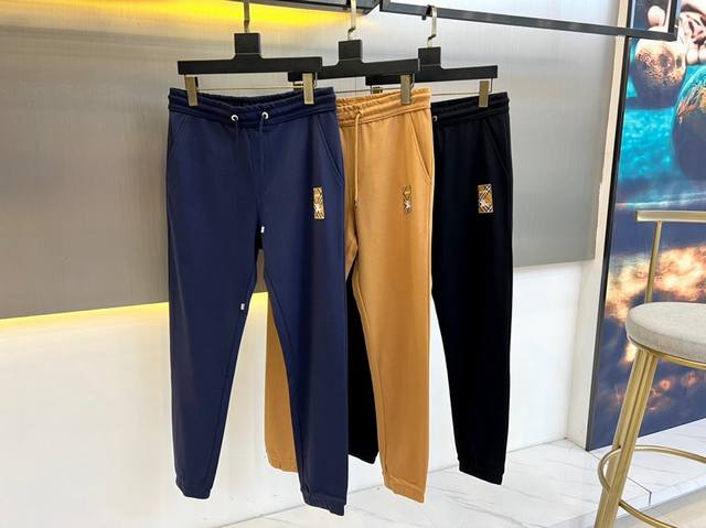 Burberry, 2025 Spring/Summer new embroidered casual sweatpants. Made from custom-made knitted sea island cotton, the meticulously crafted knitting technique creates the original softness of cotton, with a grid-like design. The drawstring elastic waist and elastic screw-on styling are the latest sharp design trends, achieving a simple, natural, and stylish loose fit. Please specify your height and weight (