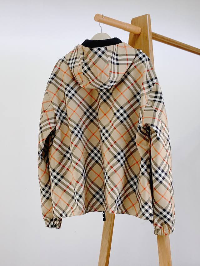 Double-sided Twill Plaid Equestrian Logo Jacket, made of plaid twill fabric, with solid nylon on the reverse. Paired with a waist-length hem, decorated with an equestrian knight's flower logo, it presents a casual and loose fit. Double zipper closure, drawstring hood and hem, zipper side pockets; reverse snap welt pockets, elastic cuffs, classic twill plaid double-sided hooded jacket, two styles can be switched at will. The classic twill plaid print is always varied and versatile for daily wear, hooded zipper jacket. The style is handsome and stylish, suitable for both men and women