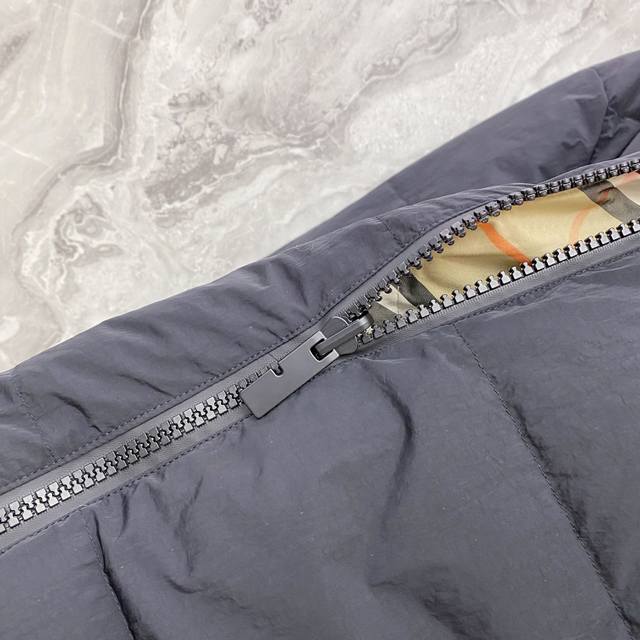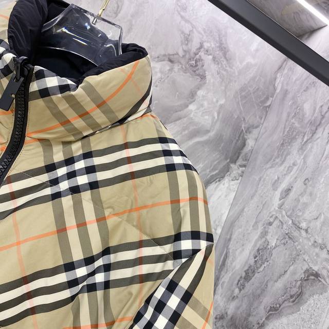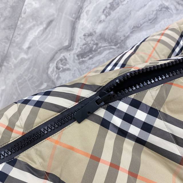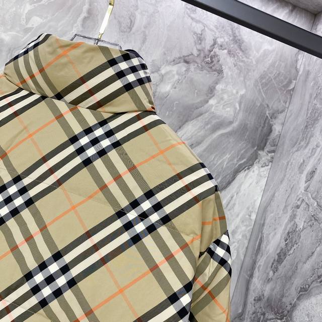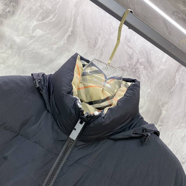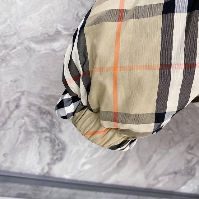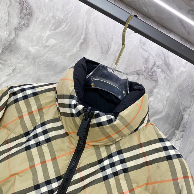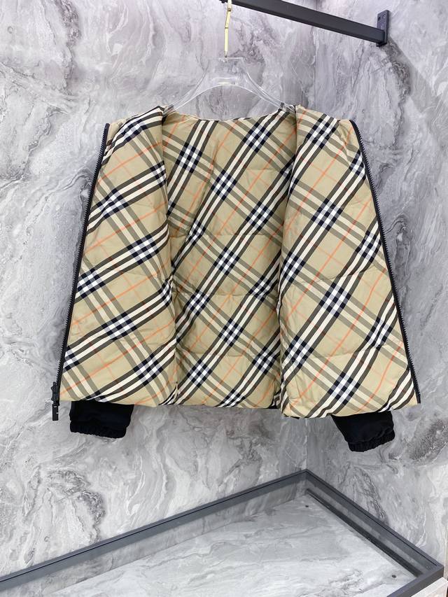 Burberry 25Ss Exclusive Latest Double-sided Stand Collar Down Jacket. High-end custom orders with high standards. Made with customer-supplied eco-friendly polyester fabric, wrinkle-resistant, three-dimensional, windproof, and warm. Stylish logo badge decoration on the chest; high-quality customer-supplied hardware accessories, exuding a luxurious feel. Sizes: M-3XL.