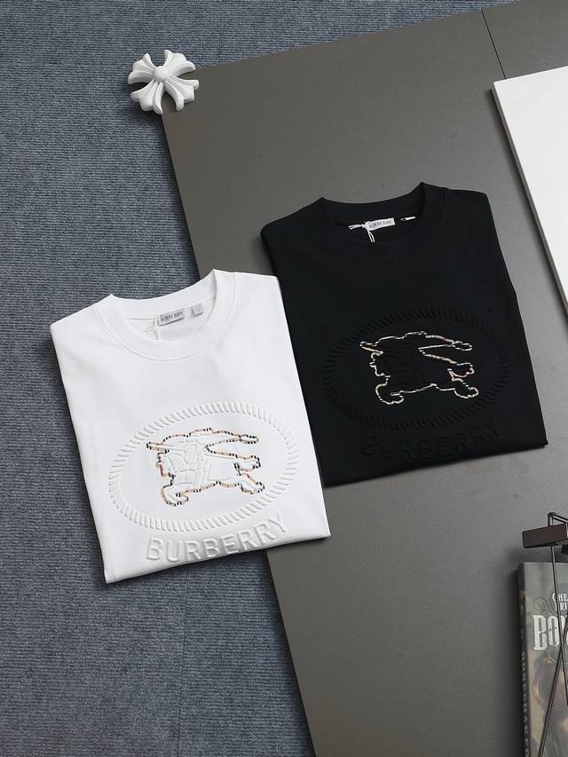 new exclusive limited 25 years latest top latest craft concave convex warhorse logo exquisite heavy craft 280g washed fabric T-shirt As the leader of the luxury industry, Burberry is well-deserved . The work we are going to talk about today first catches the eye with the loose and comfortable black and white pure color two versions ~~ The ribbed round neck has become the best modification of its version, and Burberry is listed on the chest as the upper body logo, which is also a unique pin design, using a color matching design, which highlights the texture! Niu