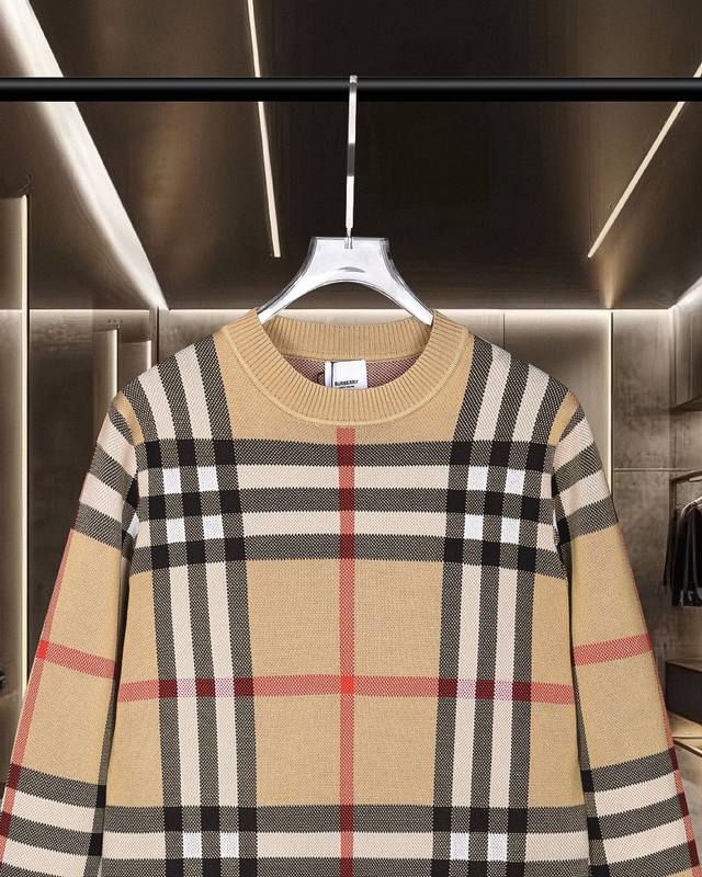 Burberry classic contrast striped knitted crewneck sweater. 2025Ss official website new original fabric, same as the official polo shirt. Custom-made imported wool blend knit fabric, high-end version. Custom-made fabric is breathable and comfortable. Exquisite craftsmanship and impeccable detailing, custom logo engraved buttons, and all three labels are complete. Brand elements design concept, reflecting high quality. Soft and delicate feel! Presenting a casual cut, the upper body version is superb. Color: Khaki. Sizes: M-Xxl.
