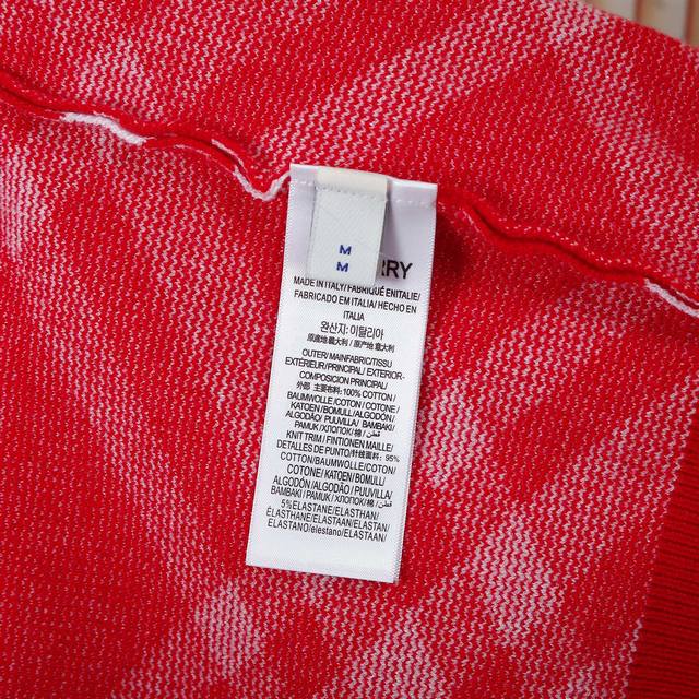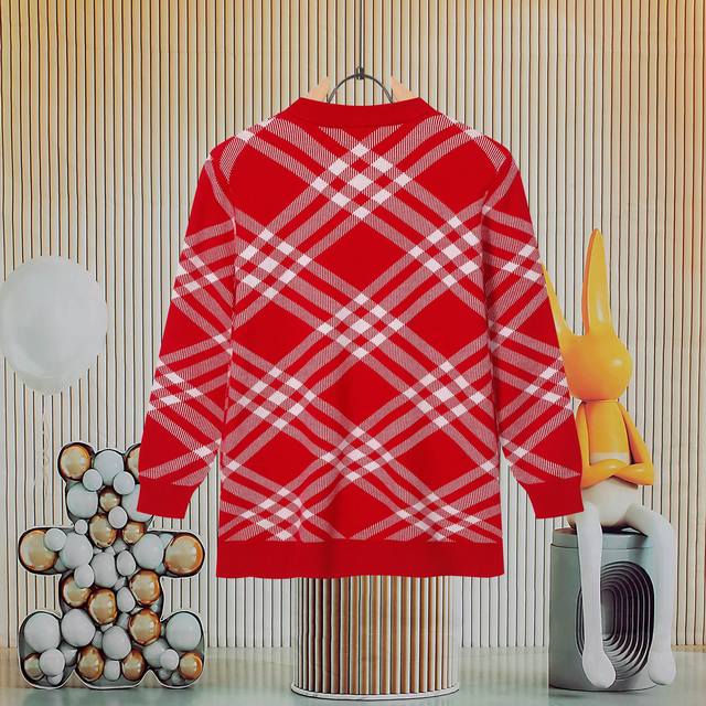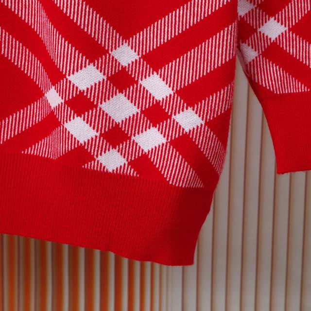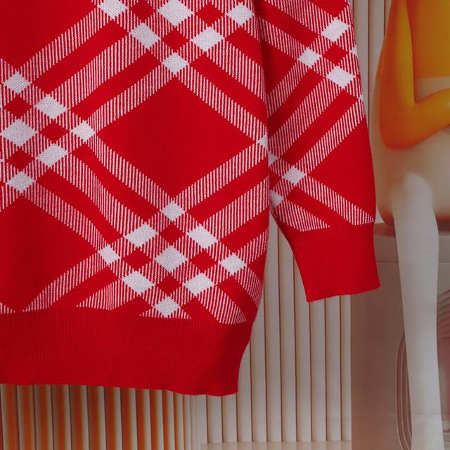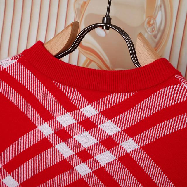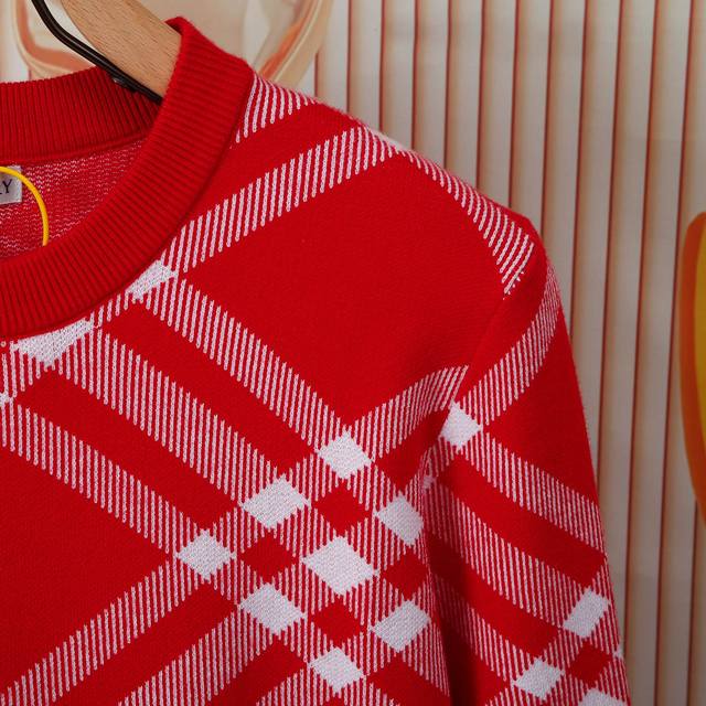 Burberry color-blocked red twill check round neck sweater, unisex couple's plain style