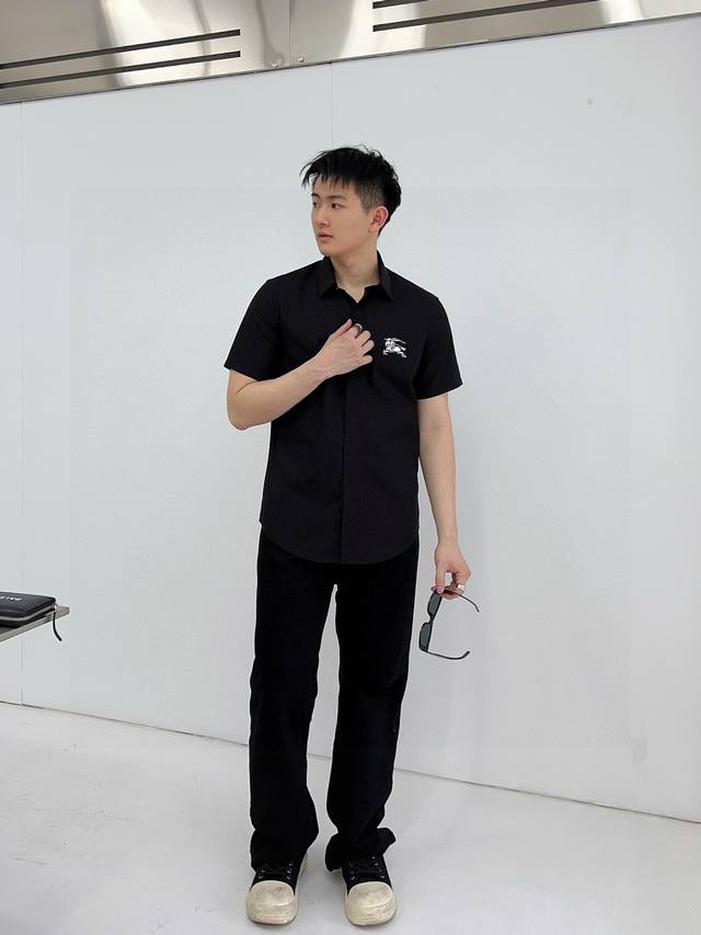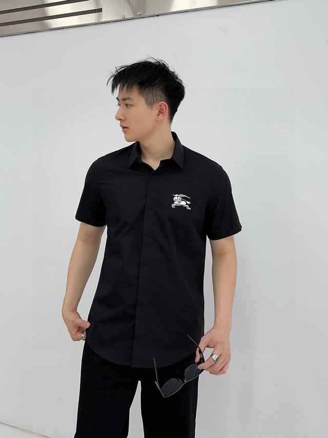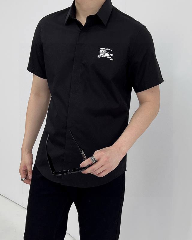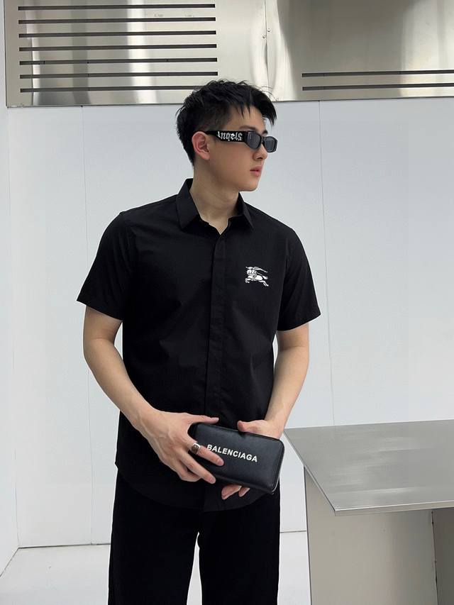 Burberry counter's latest must-have short-sleeved shirt for men, 100% natural cotton, comfortable and breathable, original single product, original fabric, soft and comfortable, high-end and luxurious upper body, enough grade for the scene, this shirt is proud to make you satisfied and face-saving Size: 38-42 Black and white 2 colors