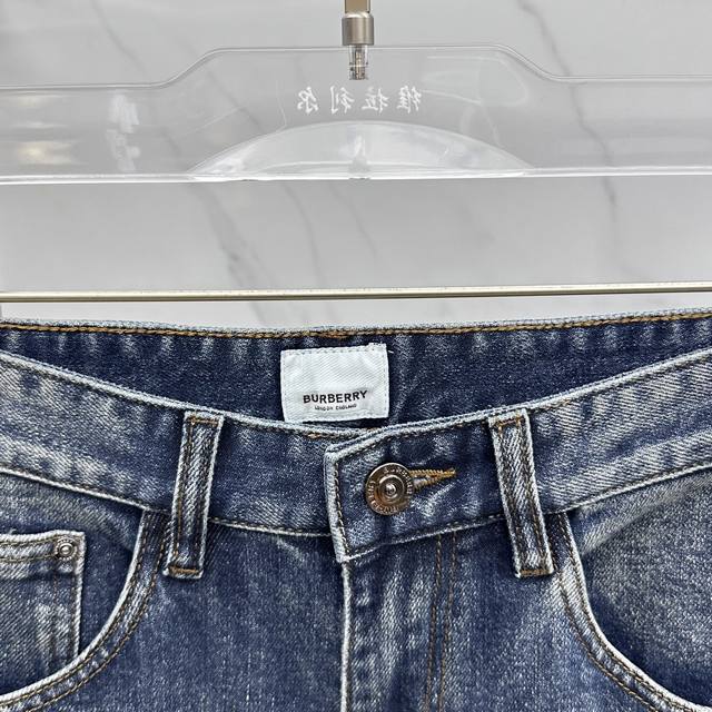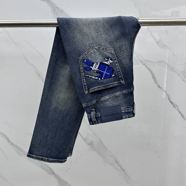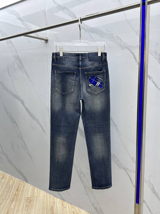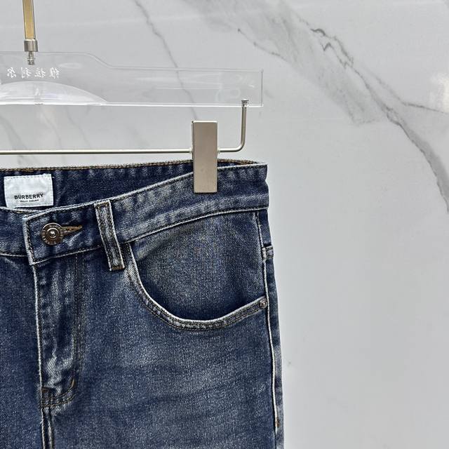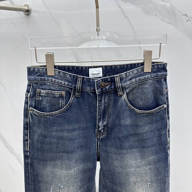 Burberry* High-end custom jeans, the latest 2025 early spring slim straight jeans, available at the counter simultaneously. Imported solid-color fabric with a slight stretch, original custom-made replica, custom-made hardware and accessories. Original quality, heavily washed, and meticulously crafted with fine stitching. Perfect fit! Original, complete with all three labels. Selected items must be retained. A10