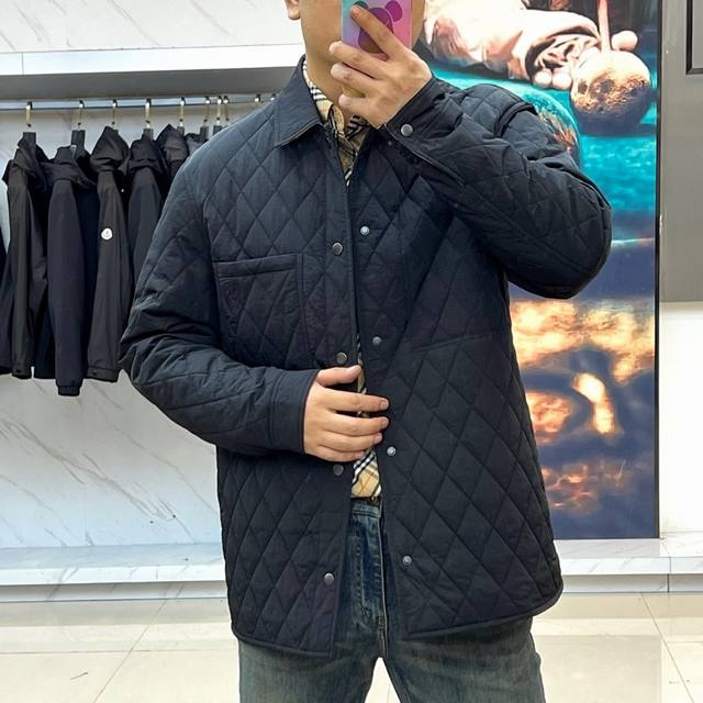 Burberry, high-quality 2025 autumn and winter men's diamond-patterned cotton jacket, classic reshape