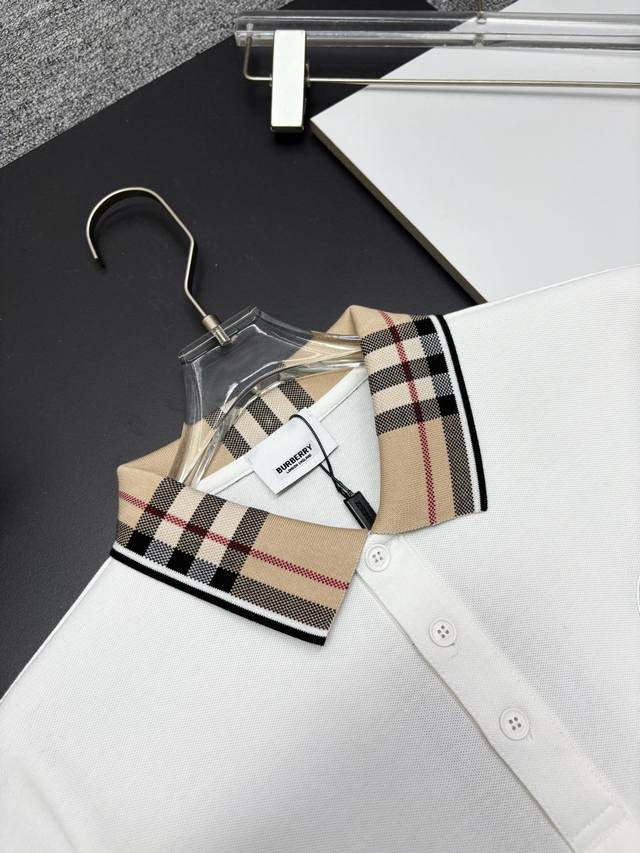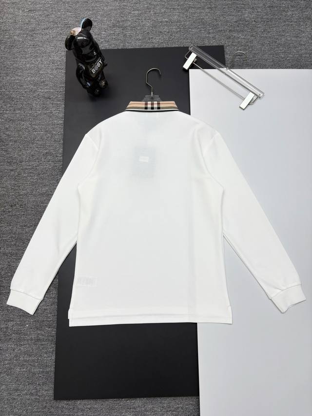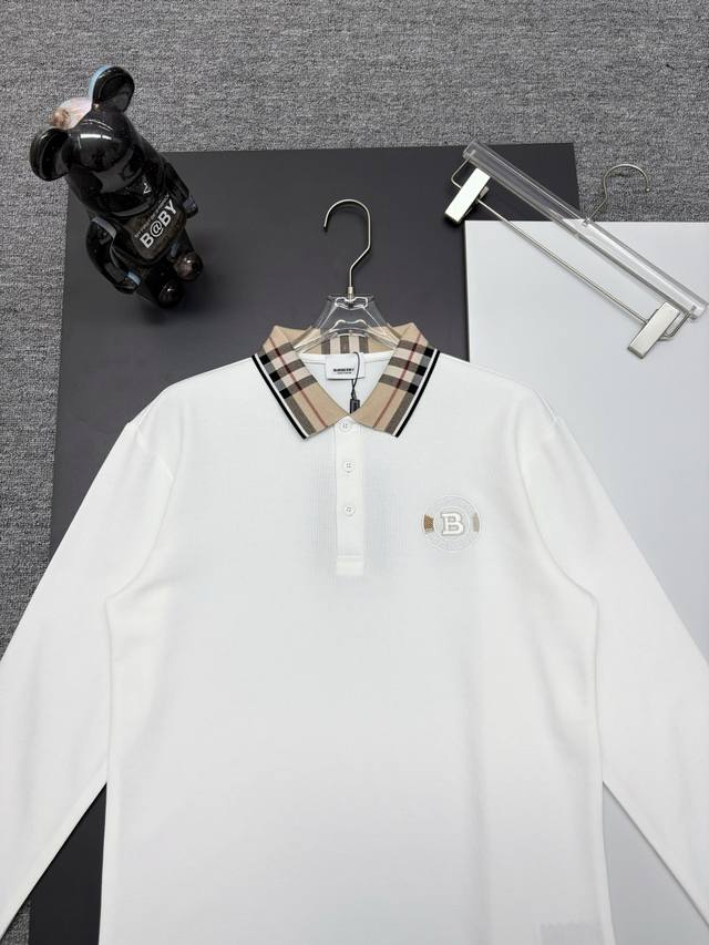 Burberry New Embroidered Check Collar Long-Sleeve Polo Shirt DDD Original Fabric, Official Same Style DDD Made of 250g Pure Cotton Piqu