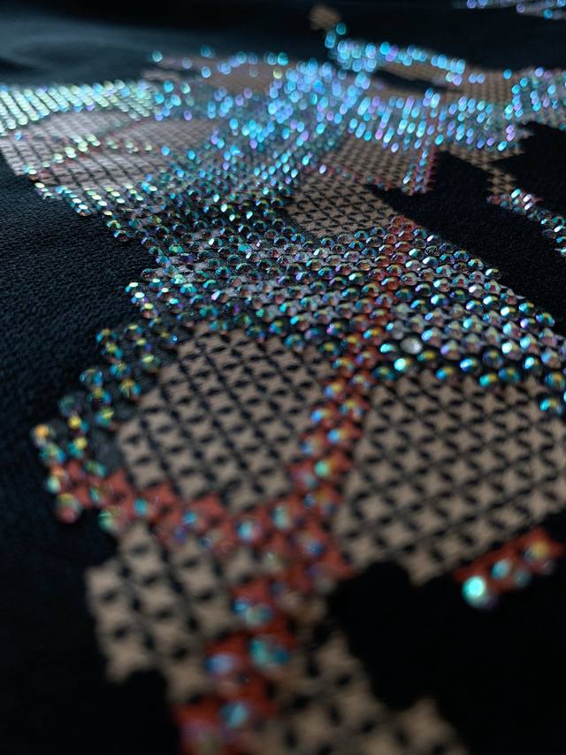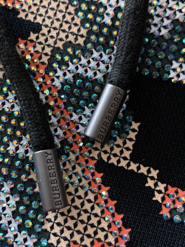 features the brand's logo and iconic equestrian knight pattern meticulously set with thousands of dazzling rhinestones, creating a dazzling visual feast. Each diamond is thoughtfully arranged, recreating the classic texture of the check while adding a bling-bling touch to the casual piece, creating a striking visual effect. The