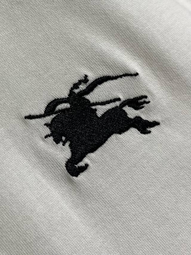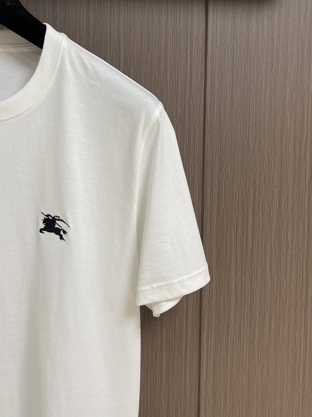 Burberry's simple, solid-color short-sleeved embroidered warhorse T-shirt is made from G-cotton plain fabric, which is pre-shrunk to resist deformation, fading, and shrinkage. The stitching is meticulously done, and the webbing at the back collar extends to the shoulders for reinforcement. The neckline and shoulders are joined by a backstitch for a seamless connection. The warhorse logo is embroidered on the chest, complementing the solid-color look. It's simple yet sophisticated, vintage yet sophisticated! Sizes: S-Xxl