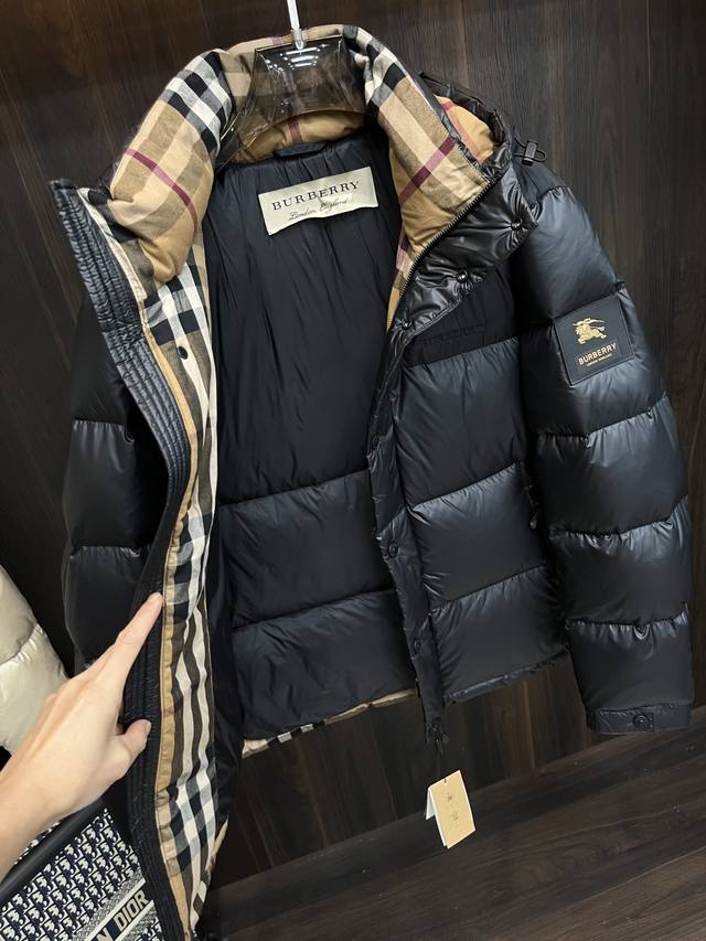 Features Burberry 2025 latest fashion designer down jacket, Burberry hooded down jacket, a top-selling light luxury down jacket for winter, a best-selling down jacket, featuring embroidered letter logo design on the chest, 90# white goose down filling, and a war horse badge arm patch. The design showcases high-end craftsmanship and a sophisticated structural cut to present a diverse image for men. Slim and neat, the cut fits well and meets the current trend of layering. A versatile style for everyday wear! Colors: Black, Brown, Khaki Sizes: M-3XL New 2025 release