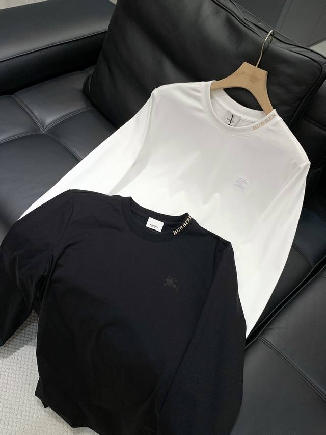 New Burberry long-sleeved T-shirt, the latest product for early autumn 2025, available at the counter at the same time, original single-order goods, fashionable and casual round neck long-sleeved T-shirt, imported original fabric, comfortable and breathable upper body, top-grade embroidery letter pattern decorative logo, extremely high grade, comfortable and versatile, top body very handsome, 2 colors recommended, sizes: M-3Xl.