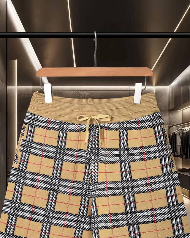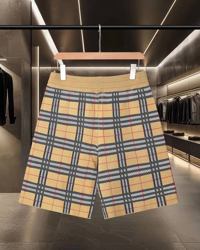 Burberry Bbr classic jacquard knit craftsmanship, tight and three-dimensional version, full floral stripes splicing custom trouser rope hardware texture, convex and concave three-dimensional effect, fashionable and casual 2025Ss official website new original fabric official same style shorts customized mesh sweater knit fabric high-end version, counter custom fabric breathable and comfortable, fine craftsmanship, perfect detailing, custom logo engraved buttons, three complete labels. Brand element design concept, embodying high quality. Delicate and soft feel! Presenting a casual cut, the upper body version is superb size: M-2Xl
