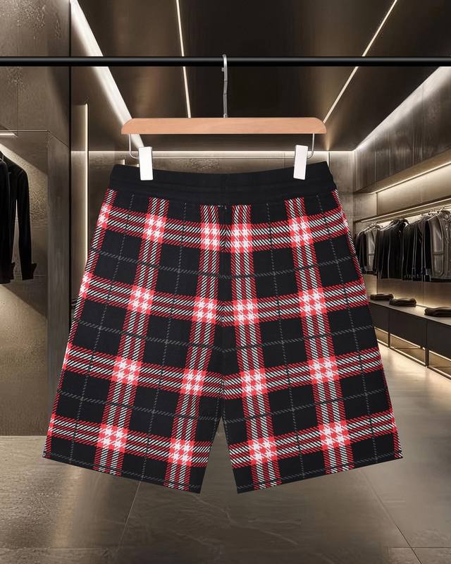 Burberry Bbr classic jacquard knit craftsmanship, tight and three-dimensional version, full floral stripes splicing custom trouser rope hardware texture, convex and concave three-dimensional effect, fashionable and casual 2025Ss official website new original fabric official same style shorts customized mesh sweater knit fabric high-end version, counter customized fabric is highly breathable and comfortable, fine workmanship, detail processing is impeccable, custom logo engraved buttons, three complete labels. Brand element design concept, embodying high quality. Delicate and soft feel! Presenting a casual cut, the upper body version is superb size: M-2Xl
