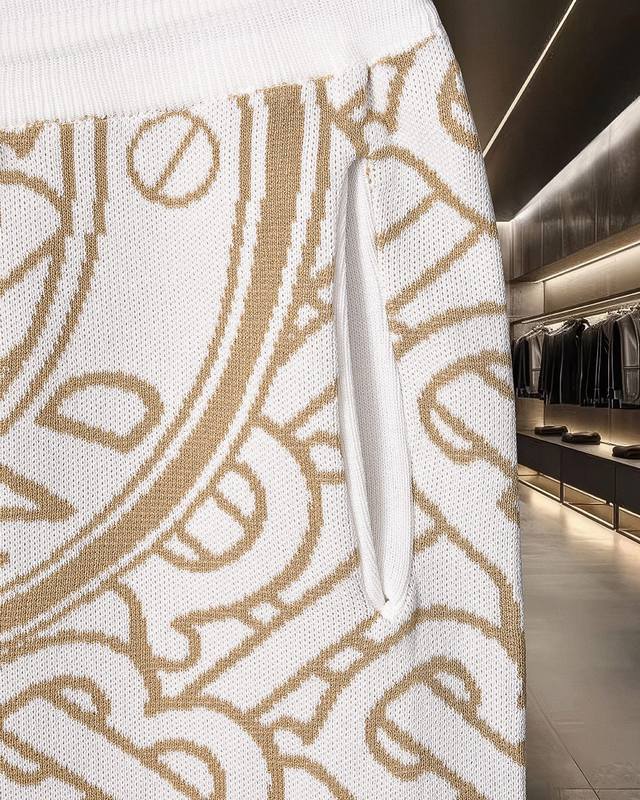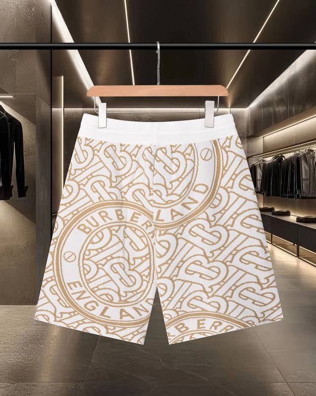 Burberry Bbr classic jacquard knit craftsmanship, tight and three-dimensional version, full-flower letter splicing custom trouser rope hardware texture, convex and concave three-dimensional effect, fashionable and casual 2025Ss official website new original fabric official same style shorts customized mesh sweater knit fabric high-end version, counter custom fabric breathable and comfortable, fine craftsmanship, perfect detailing, custom logo engraved buttons, three complete labels. Brand element design concept, embodying high quality. Delicate and soft feel! Presenting a casual cut, the upper body version is superb size: M-2Xl