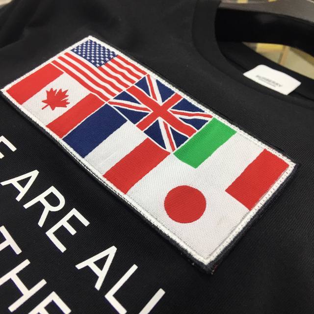 summer newest design, available on the official Burberry website, features a National Flag Guard embossed rubber embroidery short-sleeved T-shirt that's a huge hit this year. It's incredibly stylish and destined to be a hit, flattering on everyone. The English logo is crafted with the latest imported water-based epoxy technology, resulting in a truly stunning finish. The national flag design is a new addition this year, and the three-dimensional embroidery is exquisite. Simple and elegant, it also features meticulous attention to detail. Made with 80-count imported cotton, this piece is custom-made.