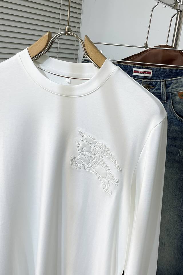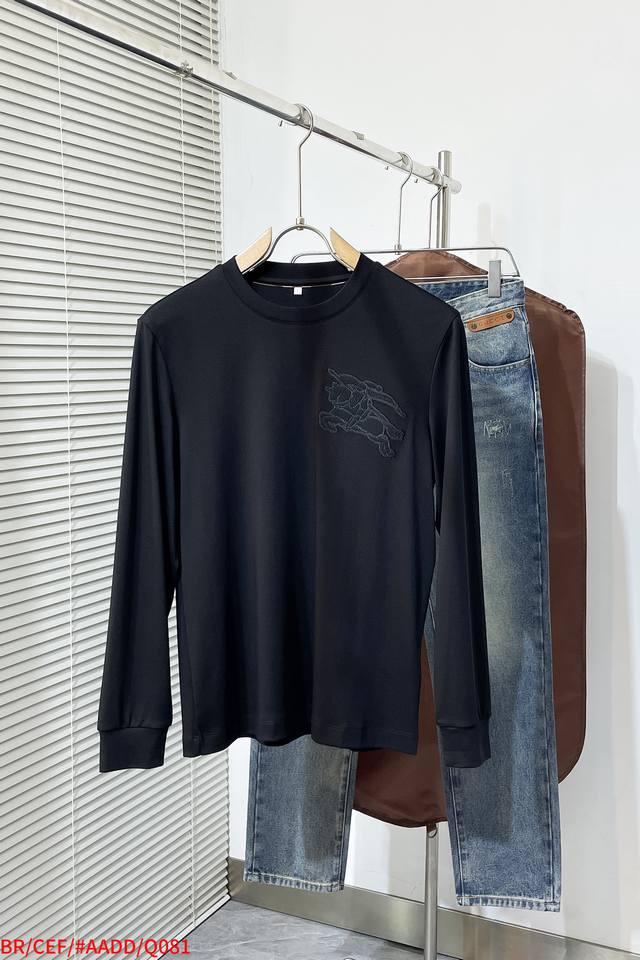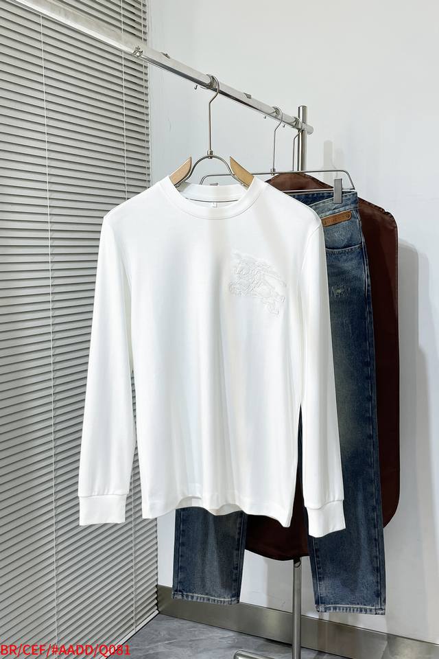 Q081 Br Burberry's new embroidered crewneck sweatshirt. This crewneck sweatshirt is crafted from cotton fleece. Soft and comfortable, it features tonal Burberry embroidery on the chest for a touch of class. The regular fit features ribbed cuffs and hem for a stylish, casual look. Suitable for both men and women, highly recommended. Sizes: M-3Xl. All three labels are included.