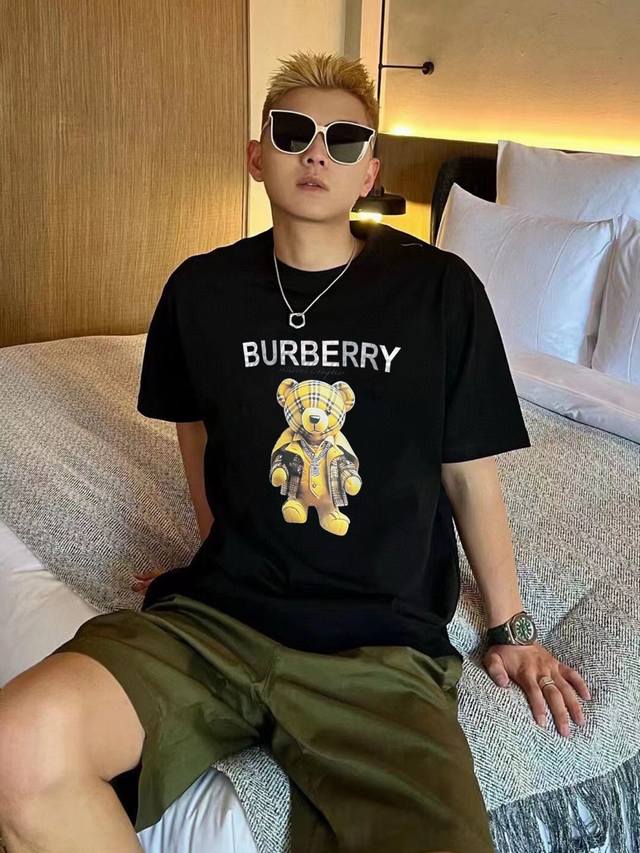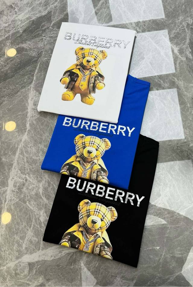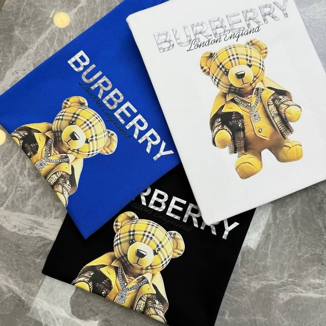 Recommended! Bbr* Burberry-Leigh 25S Couple's Bear T-shirt! The style is youthful and energetic! This new season's flagship Bear series features high-quality, first-grade hot stamping. The color transitions create a strong three-dimensional effect. Made from 280g pure cotton, it's comfortable and soft. It's a versatile style for spring and summer, perfect with jeans, casual pants, and shorts! Colors: Black, White, and Klein Blue. Sizes: S-3Xl, slightly expanded! For those 175 to 145 pounds, we recommend L