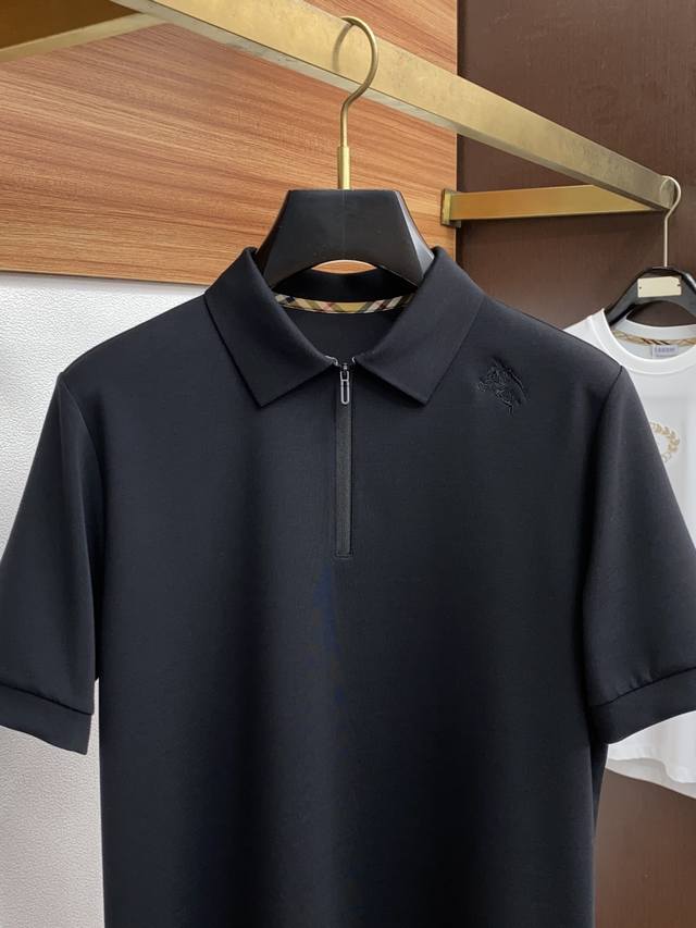 Burberry Men's High-End Simple Lapel Thickened Modal Cotton Short Sleeve, sourced from Hong Kong Trading Company, authentic quality, new Fall/Winter 25th edition, a classic Ace series!