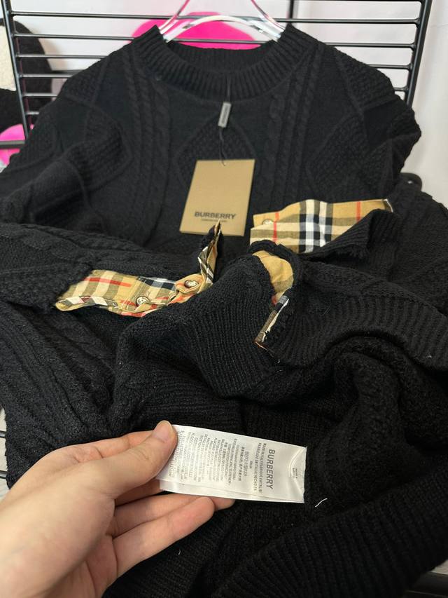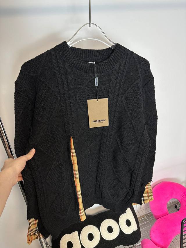 Burberry plaid patchwork round neck sweater Burberry counter synchronized knitted sweater