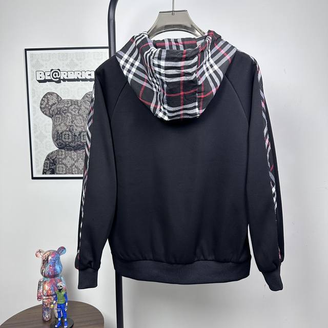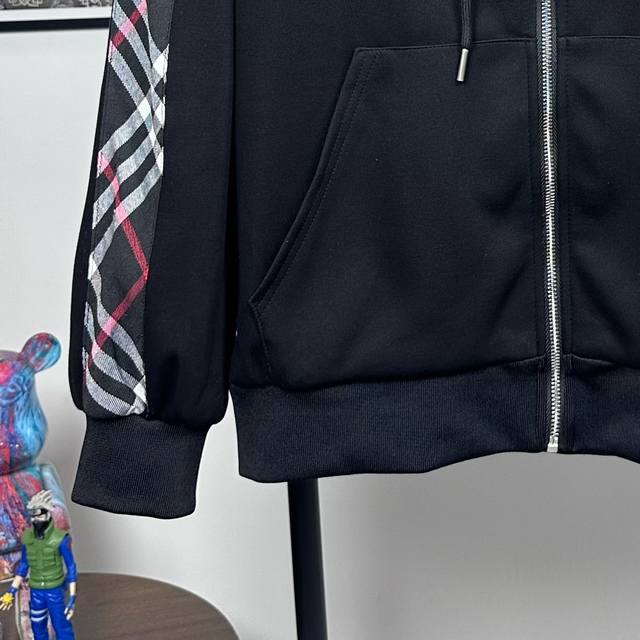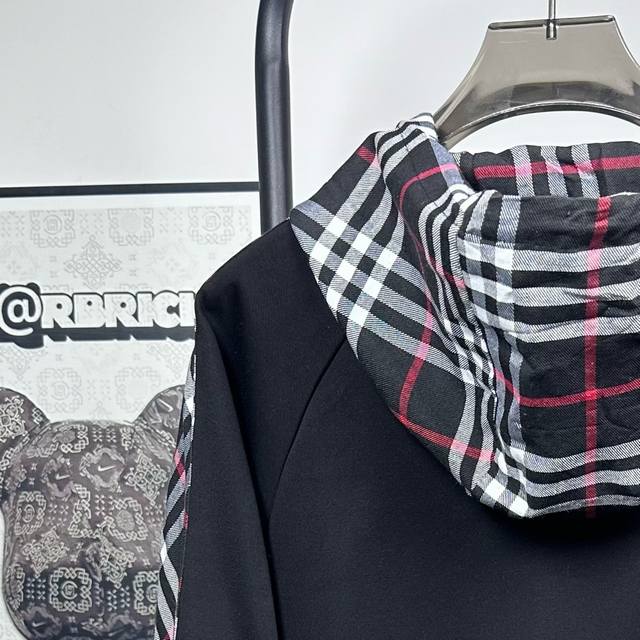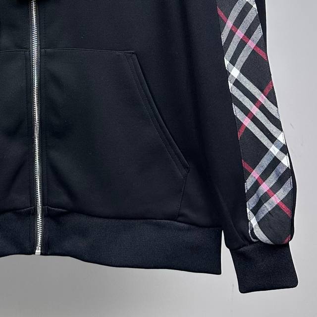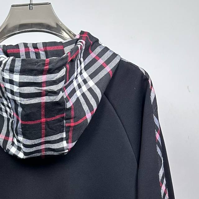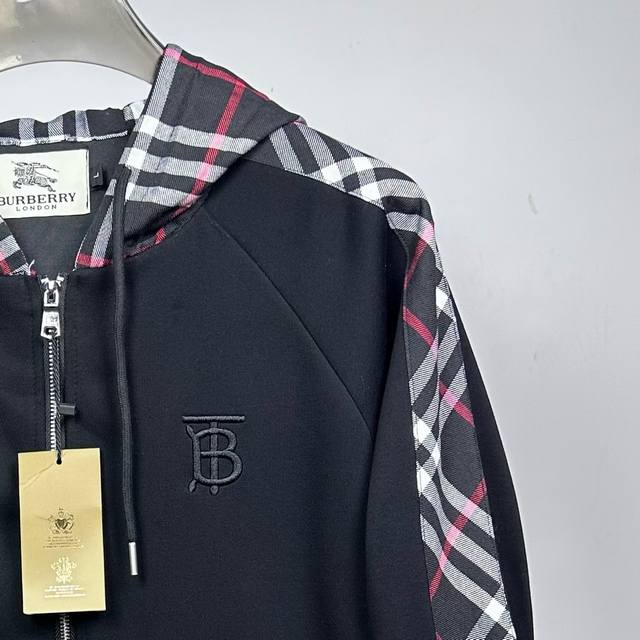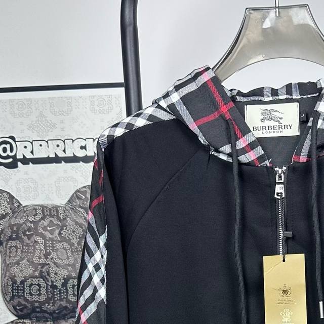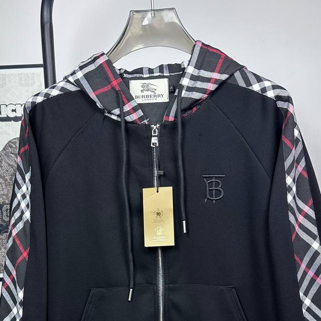 Style: Z36 Bbr Burberry Logo Embroidered Check Zip-Up Hoodie JacketThis jacket