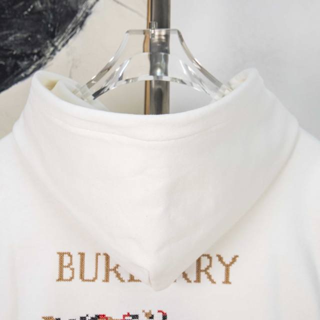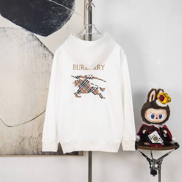Burberry Small Logo Check Small Size Embroidered Drawstring Hooded Sweatshirt