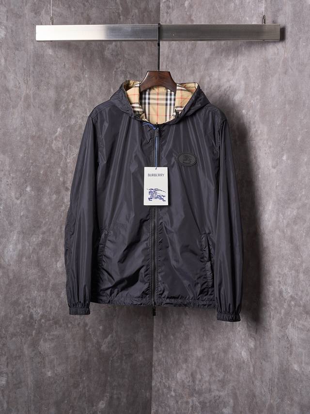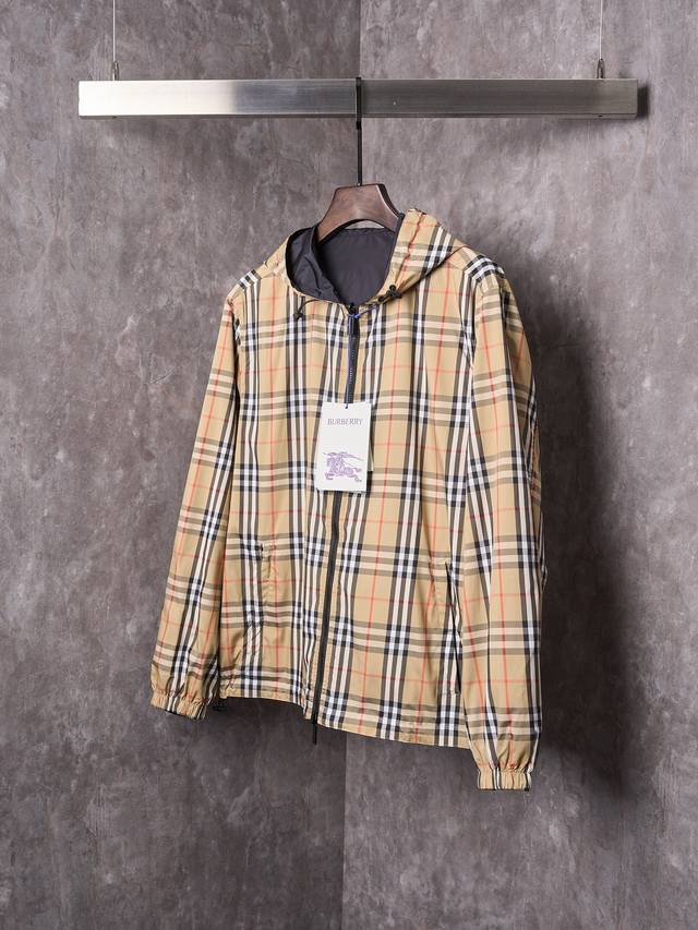 Actual item: Burberry classic check stripe logo reversible hooded jacket (DDD DDD) In stock, M-3XL (DDD)