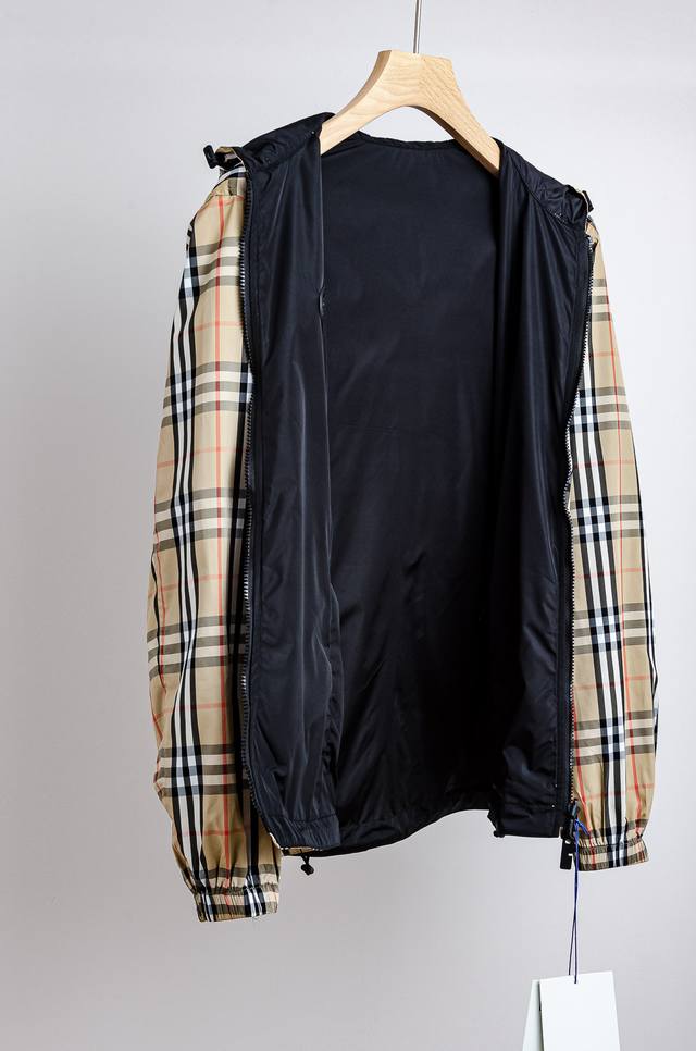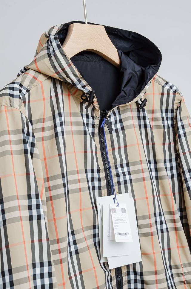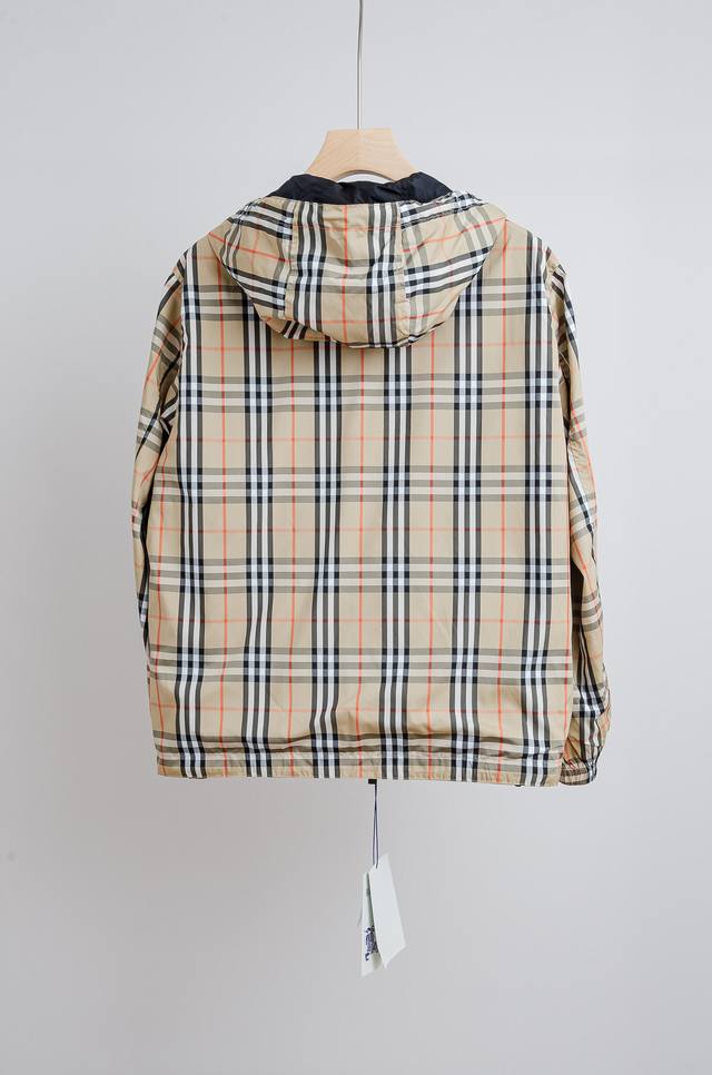 Bbr 2025 New Classic Plaid + Equestrian Logo Reversible Hooded Jacket # Ddd Windproof and waterproof nylon reversible style, one side decorated with Bur plaid, the other side adorned with equestrian rider logo Ekd solid color design, presenting a casual fit Ddd Unisex sizes: M-3XL Ddd High-quality version! What you see is what you get! DDD